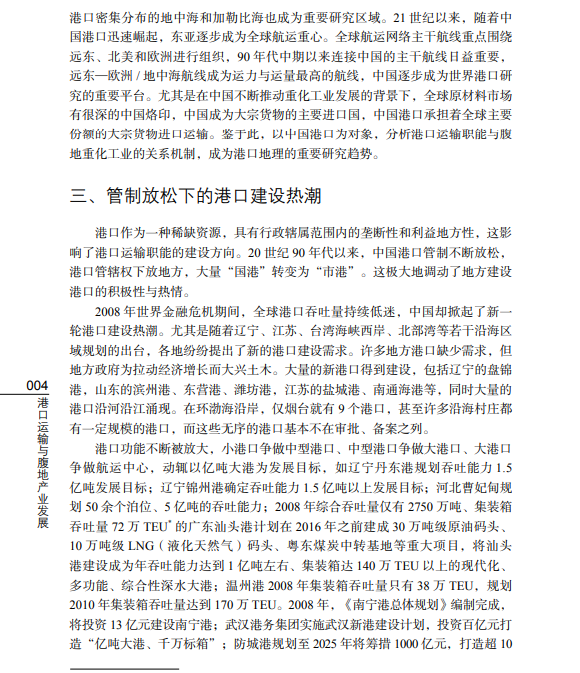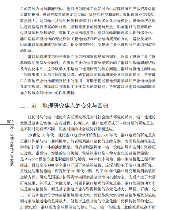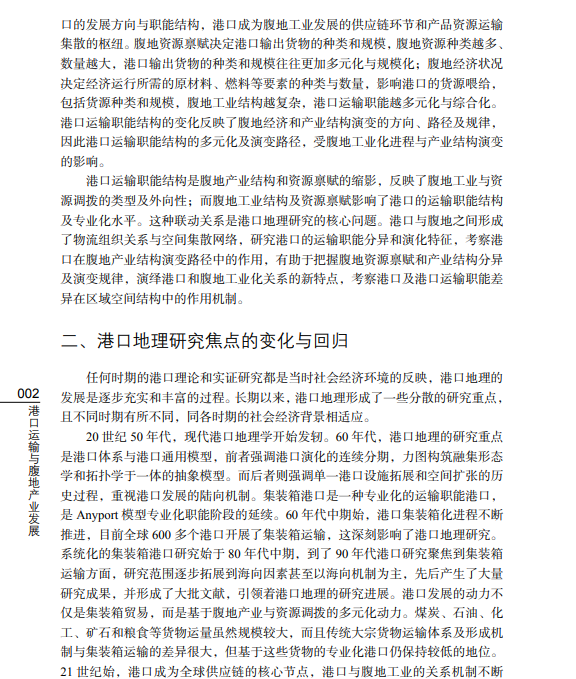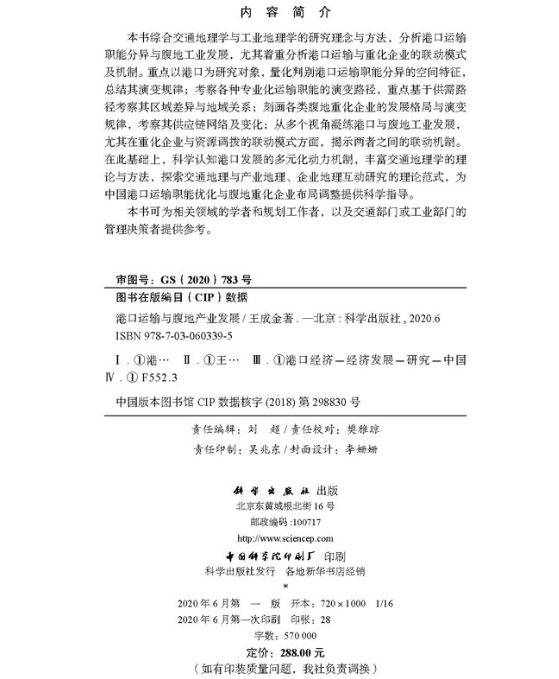 《港口运输与腹地产业发展》综合交通地理学与工业地理学的研究理念与方法,分析港口运输职能分异与腹地工业发展,尤其着重分析港口运输与重化企业的联动模式及机制。重点以港口为研究对象,量化判别港口运输职能分异的空间特征,总结其演变规律;考察各种专业化运输职能的演变路径,重点基于供需路径考察其区域差异与地域关系;刻画各类腹地重化企业的发展格局与演变规律,考察其供应链网络及变化;从多个视角凝练港口与腹地工业发展,尤其在重化企业与资源调拨的联动模式方面,揭示两者之间的联动机制。在此基础上,科学认知港口发展的多元化动力机制,丰富交通地理学的理论与方法,探索交通地理与产业地理、企业地理互动研究的理论范式,为中国港口运输职能优化与腹地重化企业布局调整提供科学指导。