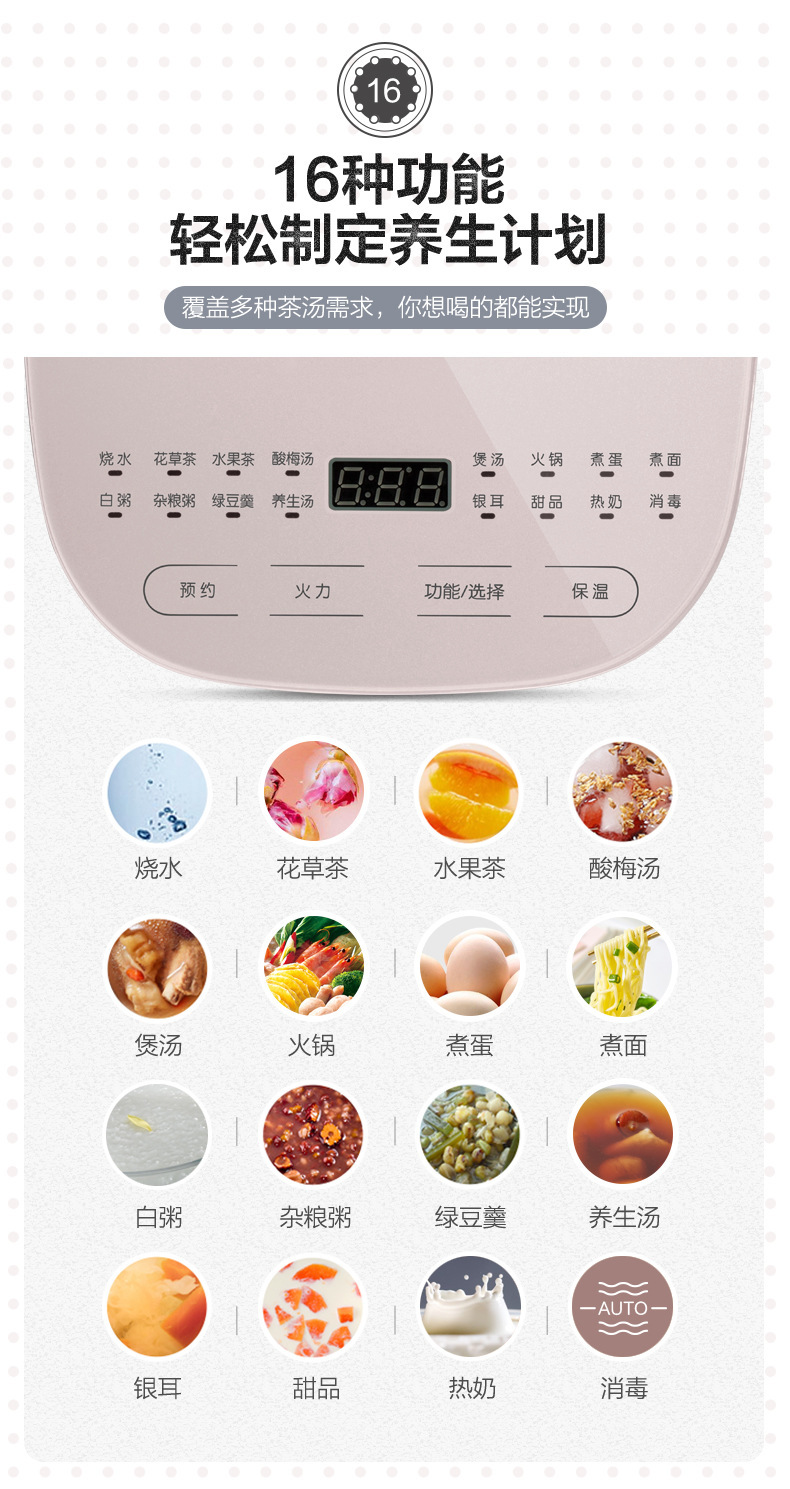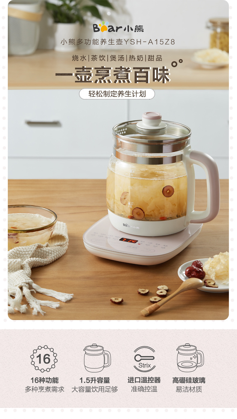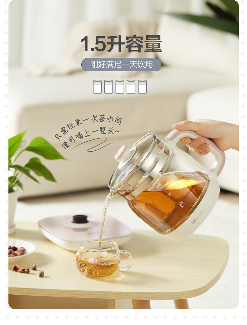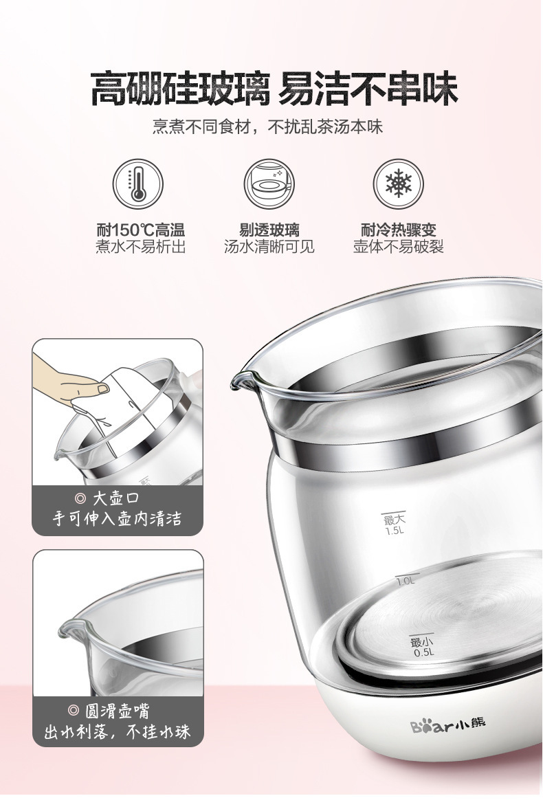 小熊 电热烧水壶 自动养生壶 茶壶 玻璃 煮茶器 1.5L 节日礼品 小熊YSH-A15Z8