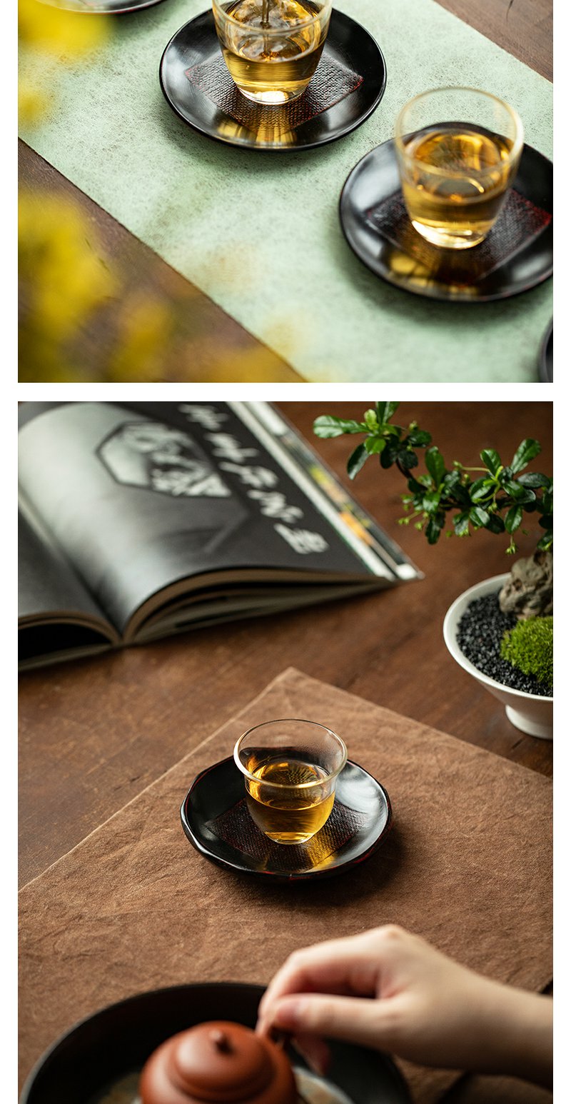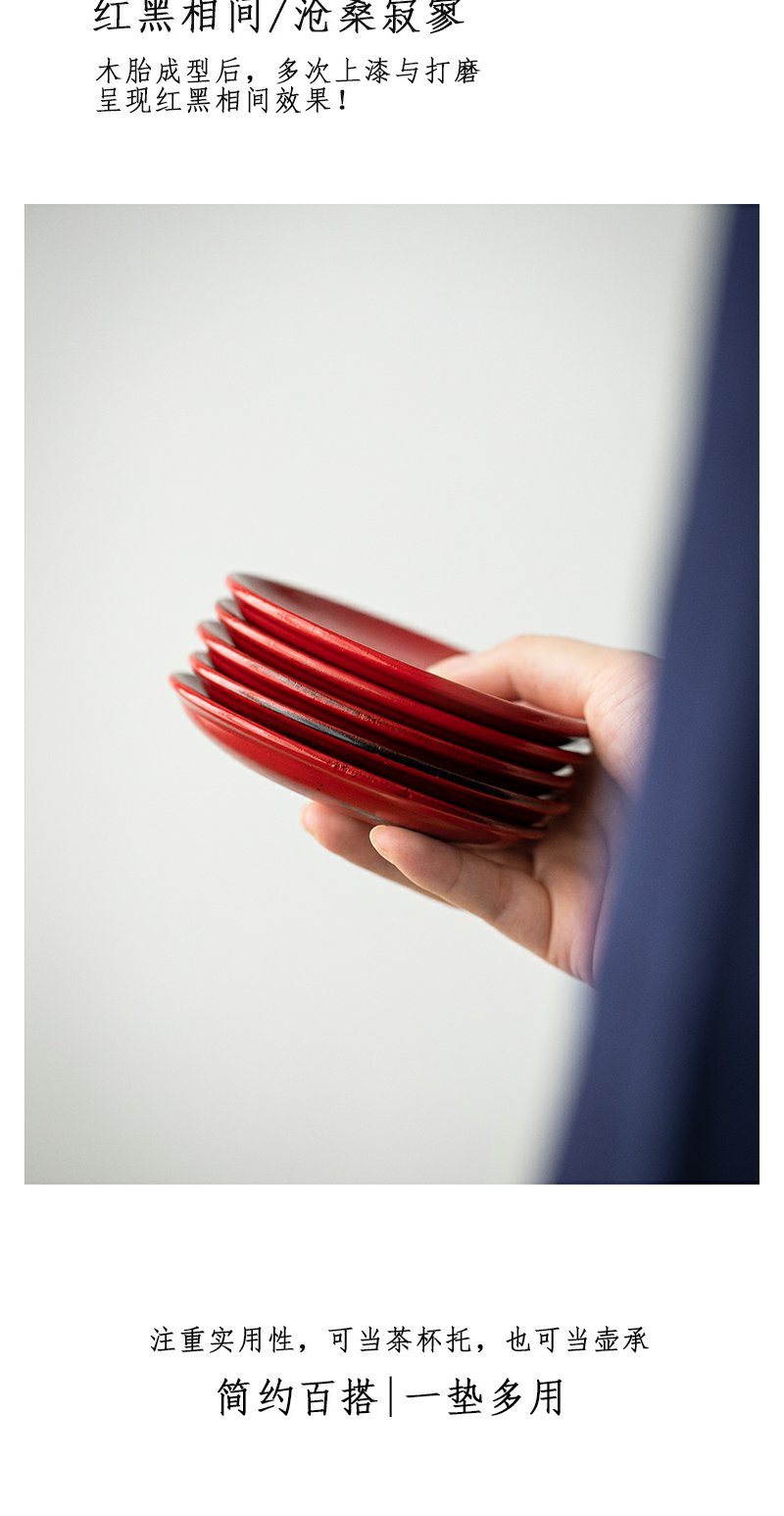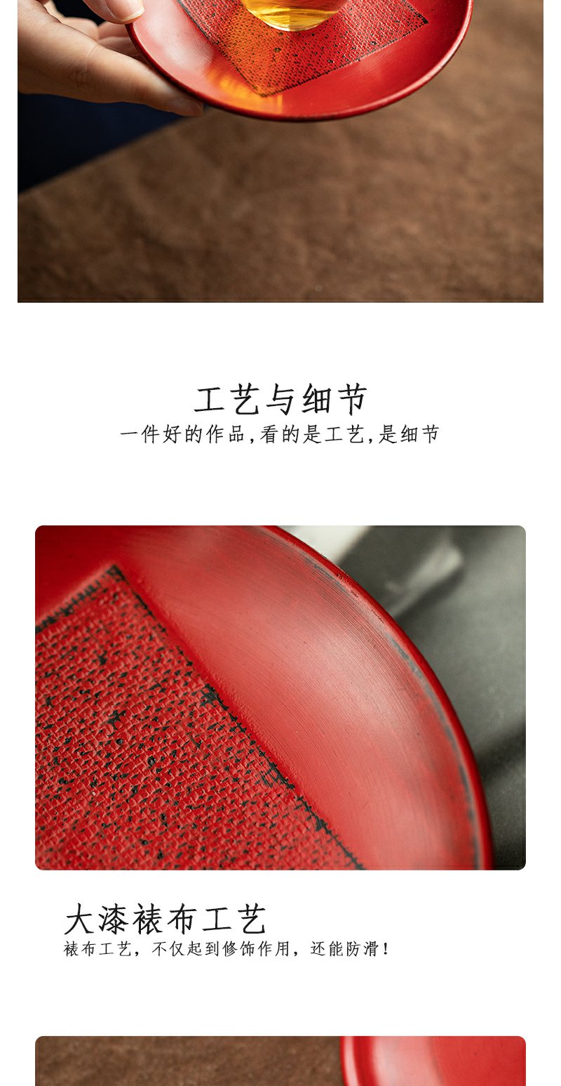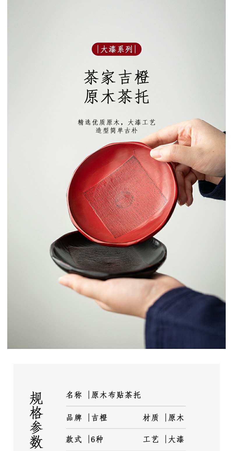 茶家吉橙原木布贴大漆茶托干泡垫小壶承茶杯托多款可选