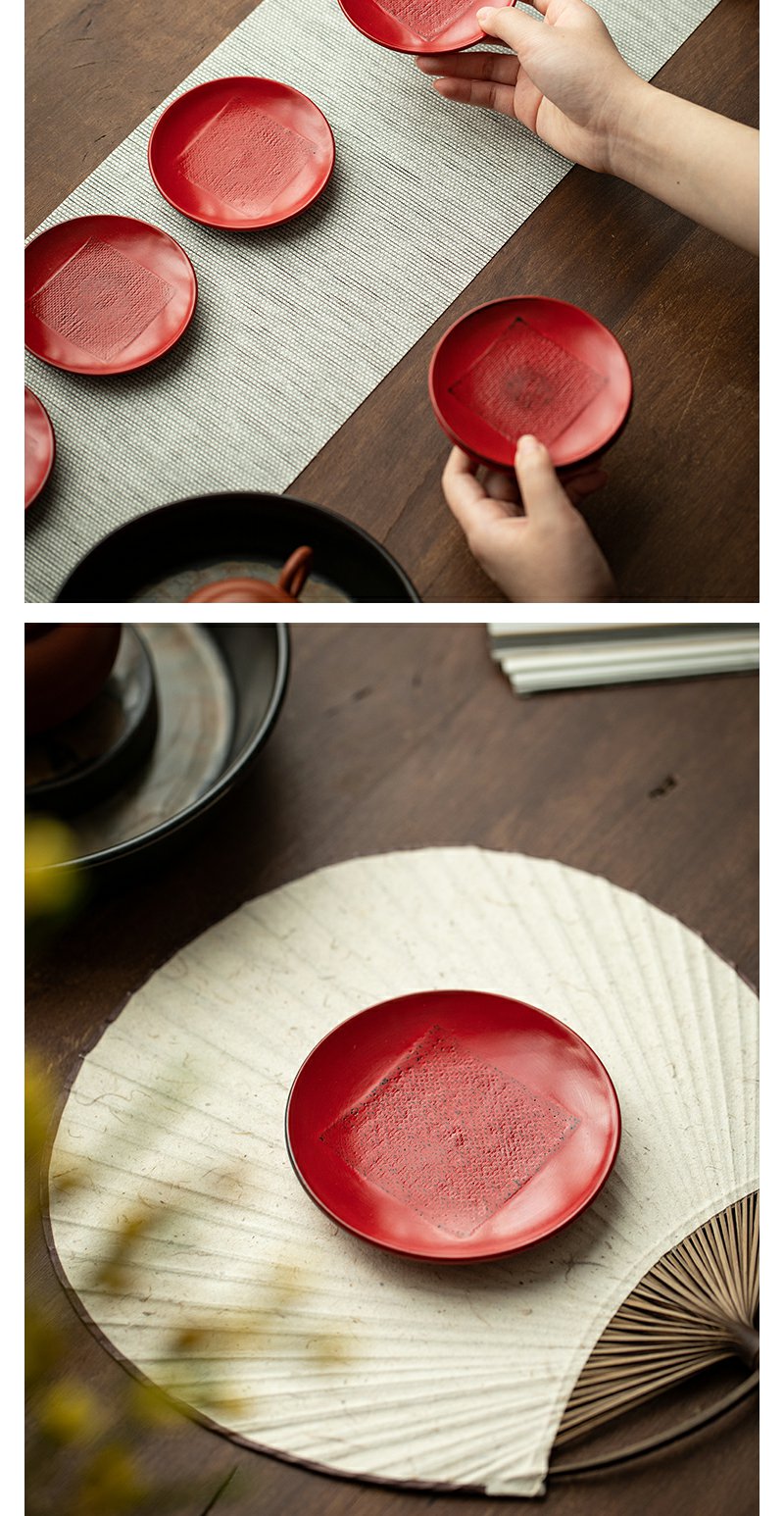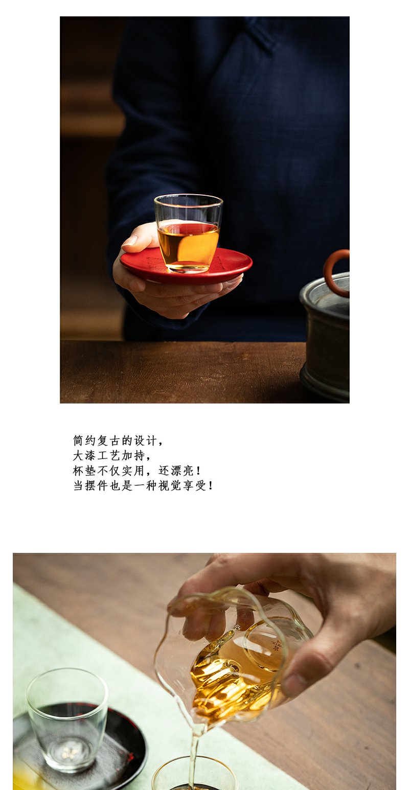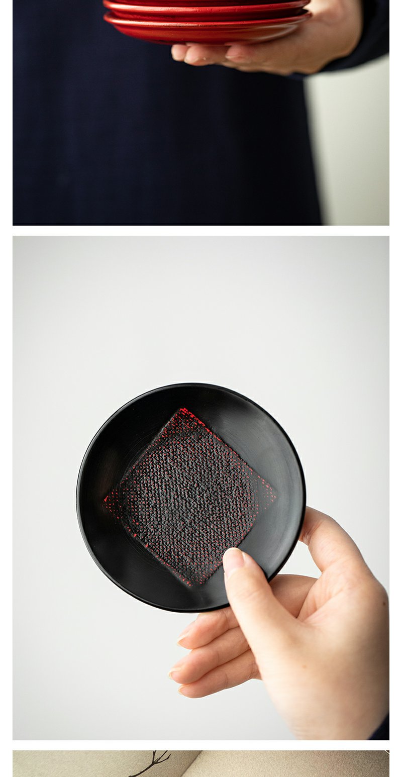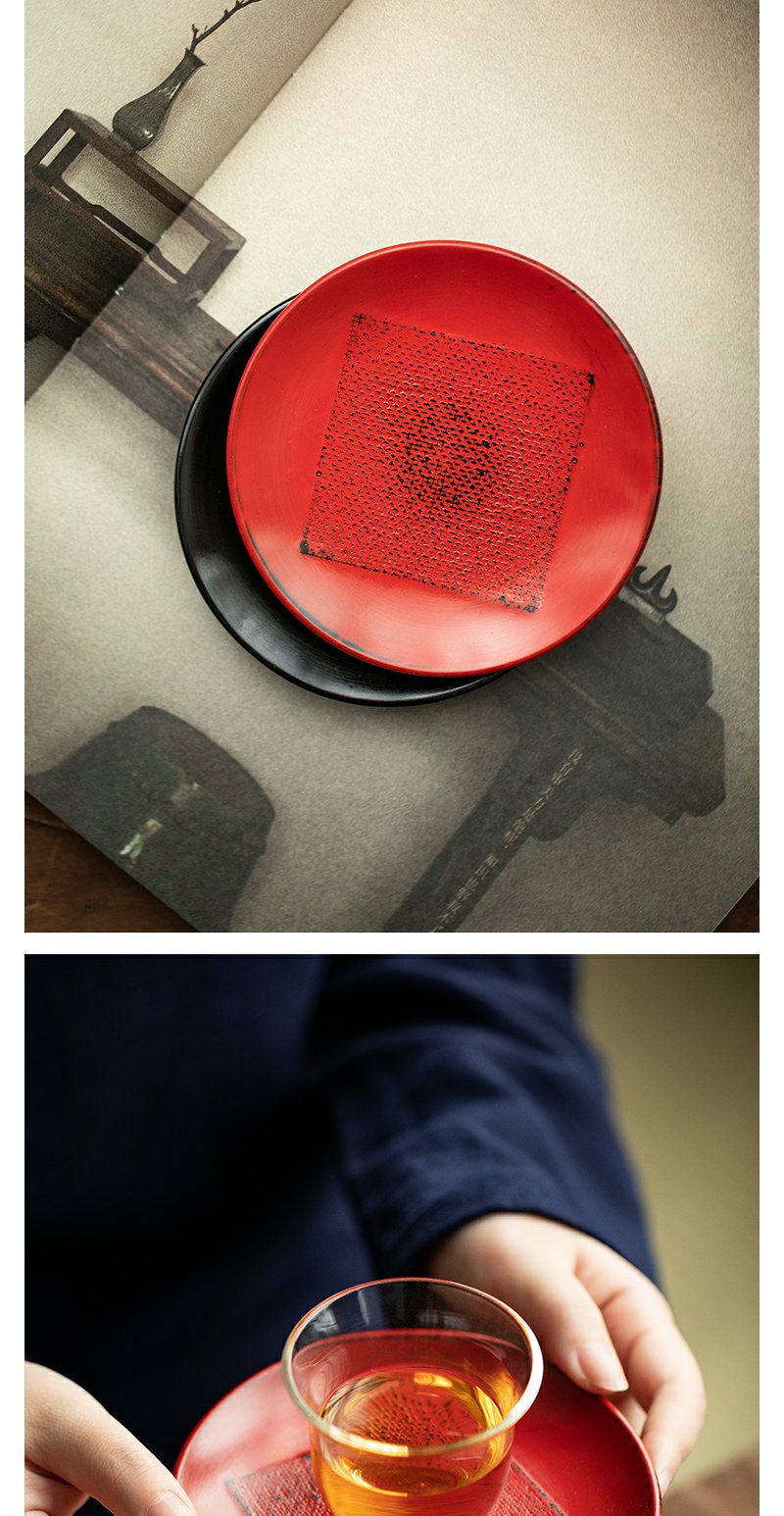 茶家吉橙原木布贴大漆茶托干泡垫小壶承茶杯托多款可选