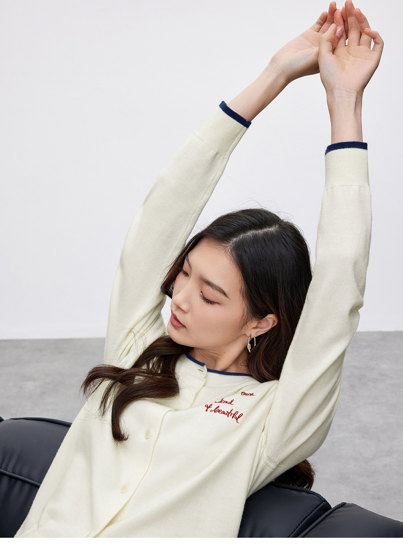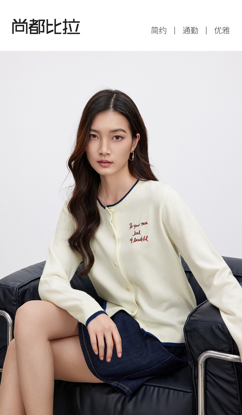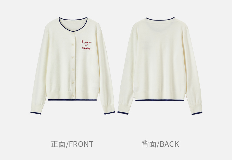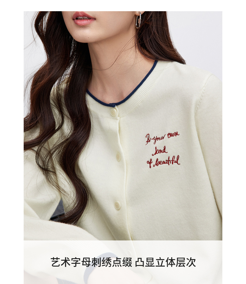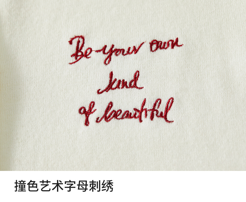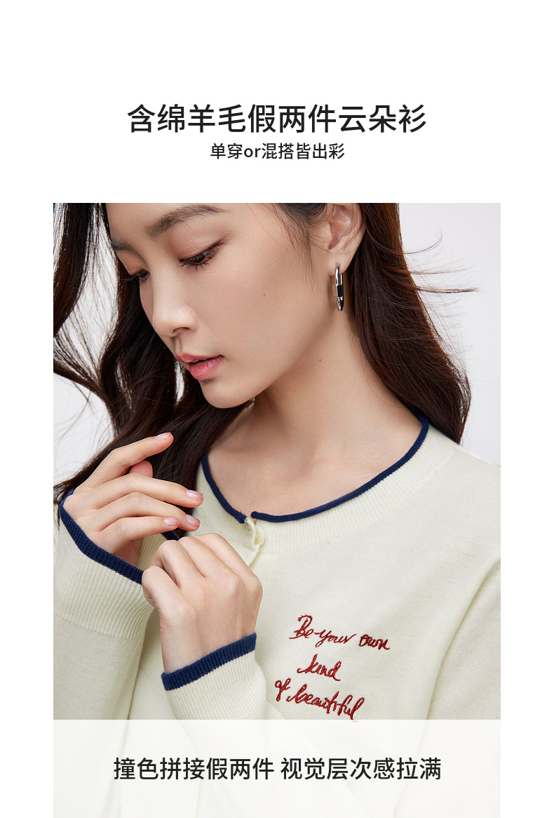 【内购】含绵羊毛通勤撞色拼接假两件双层圆领字母刺绣软糯弹力针织衫-W51H58915