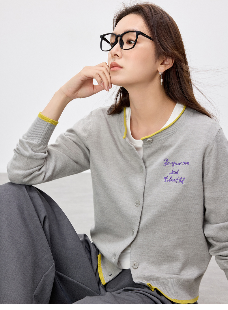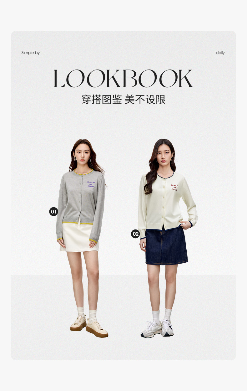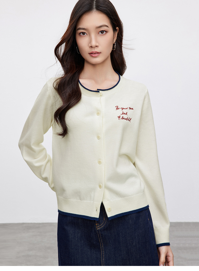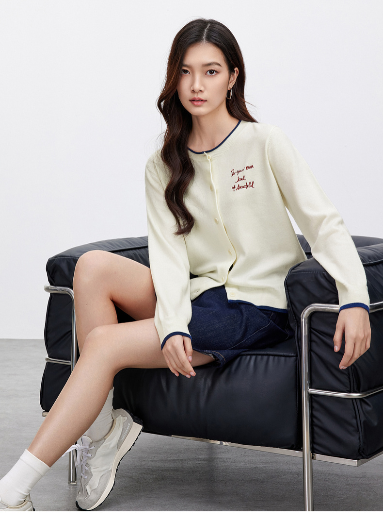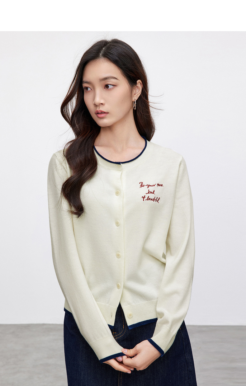 【内购】含绵羊毛通勤撞色拼接假两件双层圆领字母刺绣软糯弹力针织衫-W51H58915