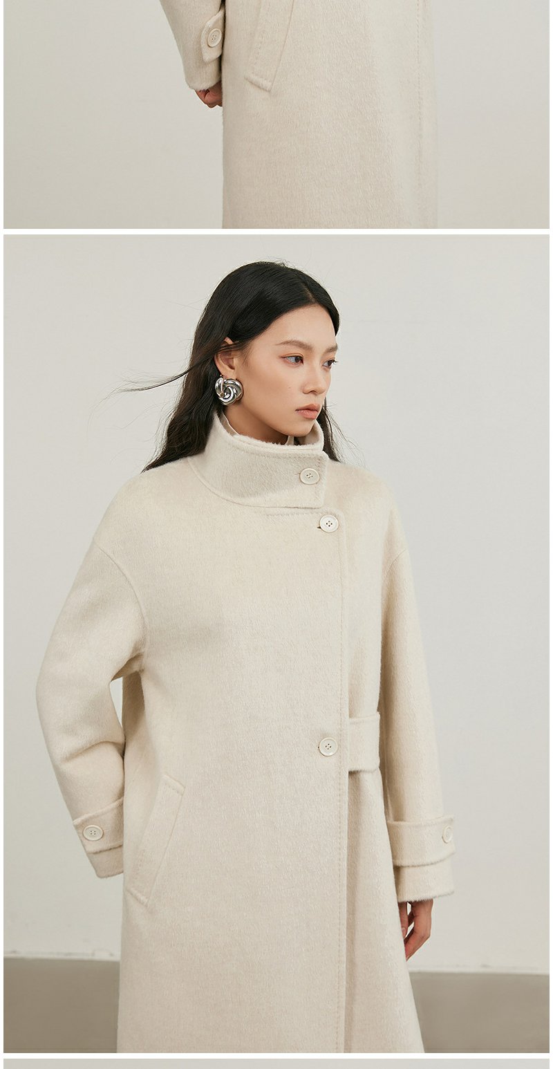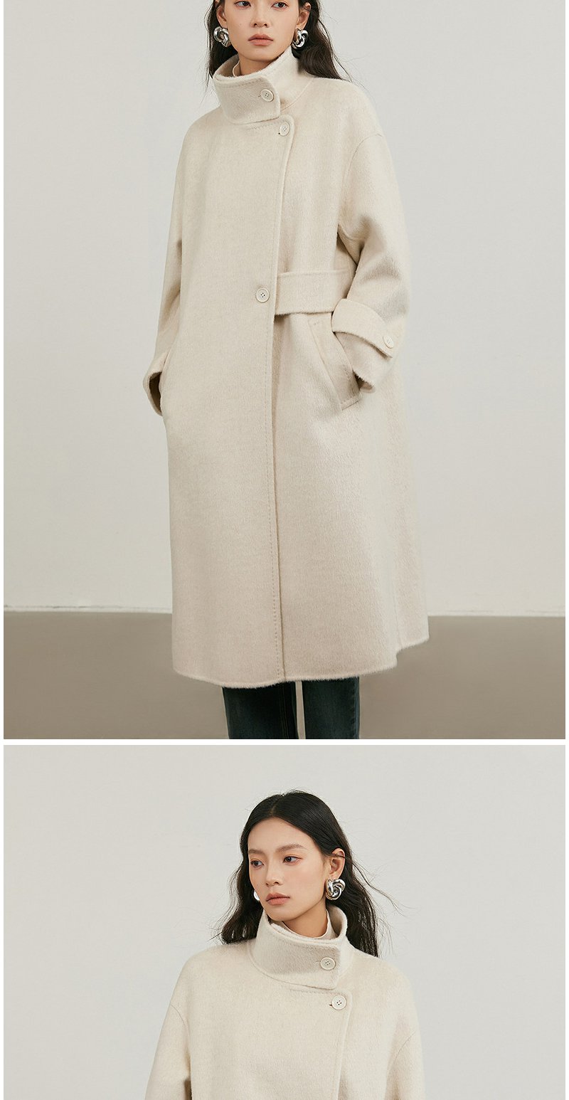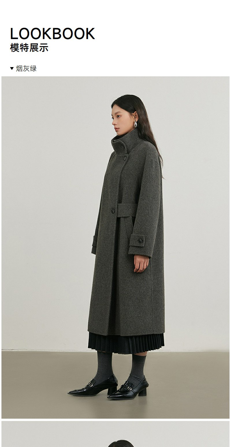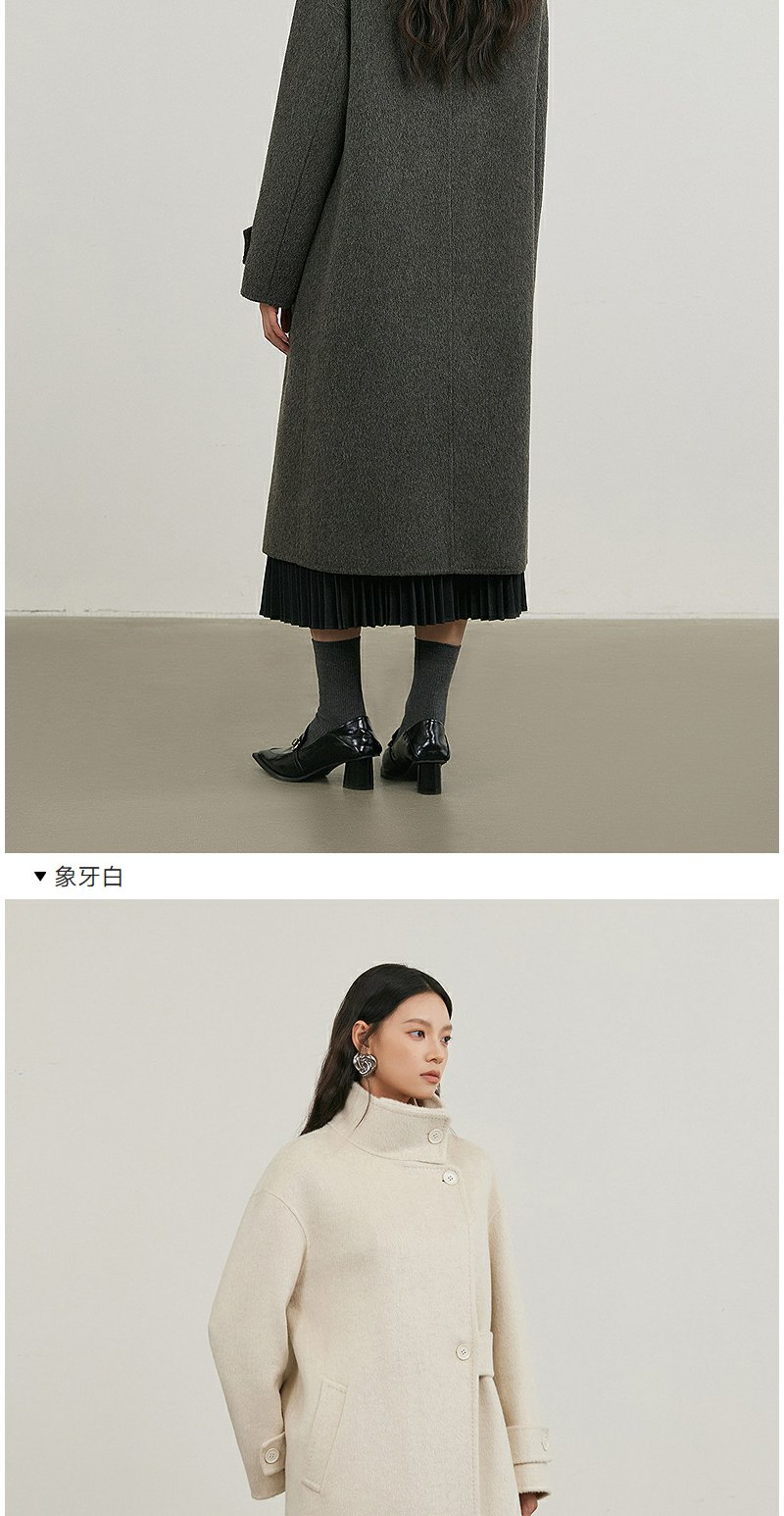 NEELLY纳俪商场同款冬新款高级感立领双面羊毛大衣女长款毛呢外套N25114N04606