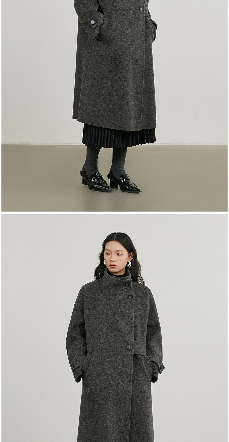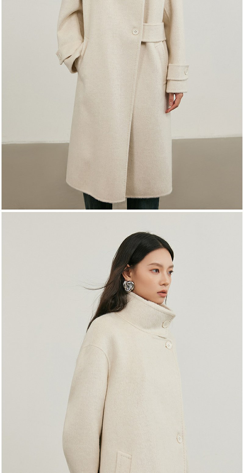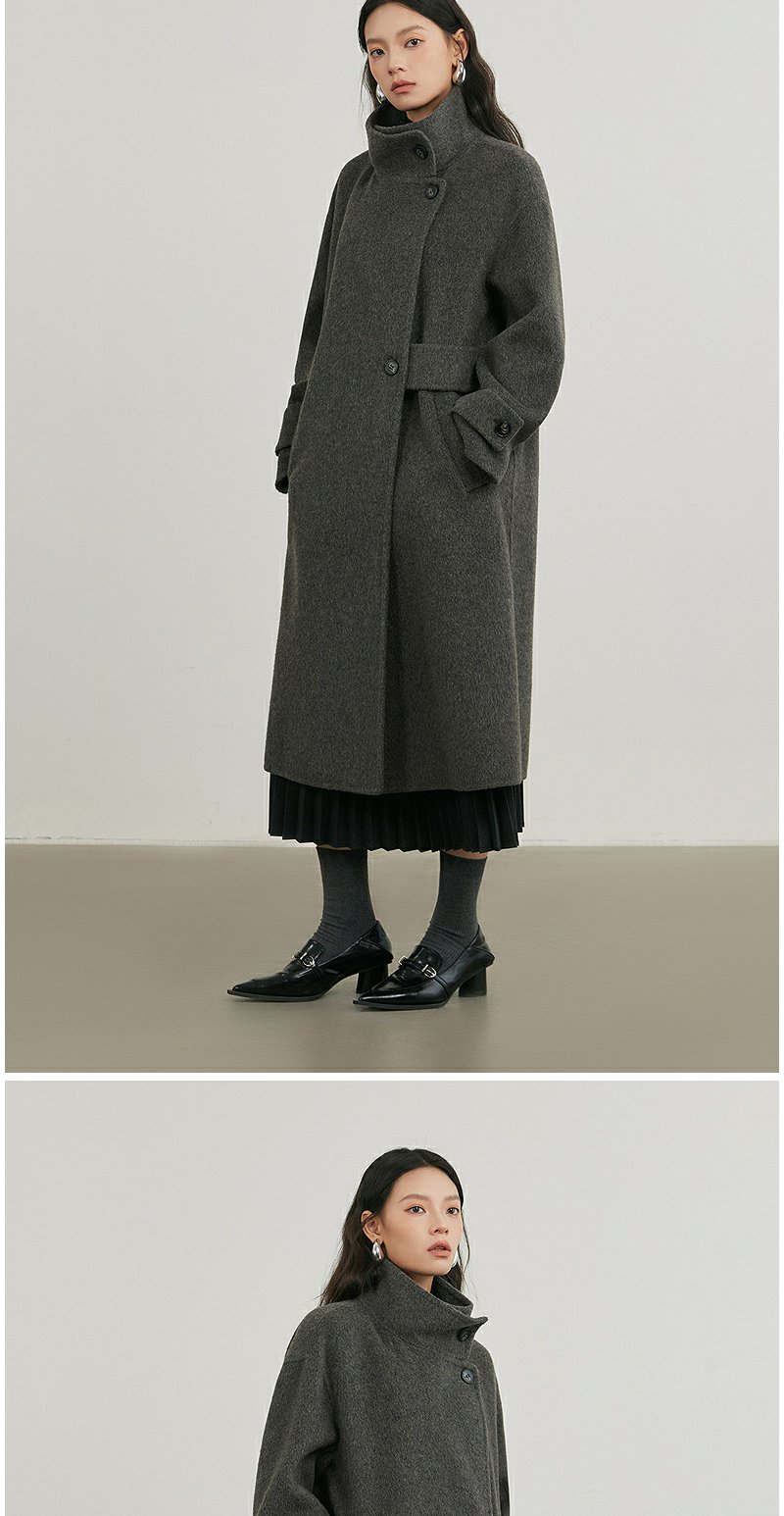 NEELLY纳俪商场同款冬新款高级感立领双面羊毛大衣女长款毛呢外套N25114N04606