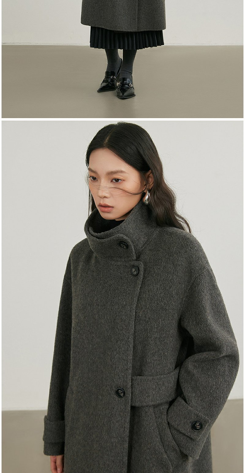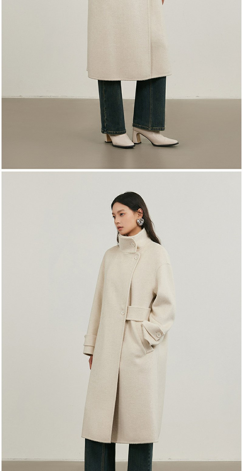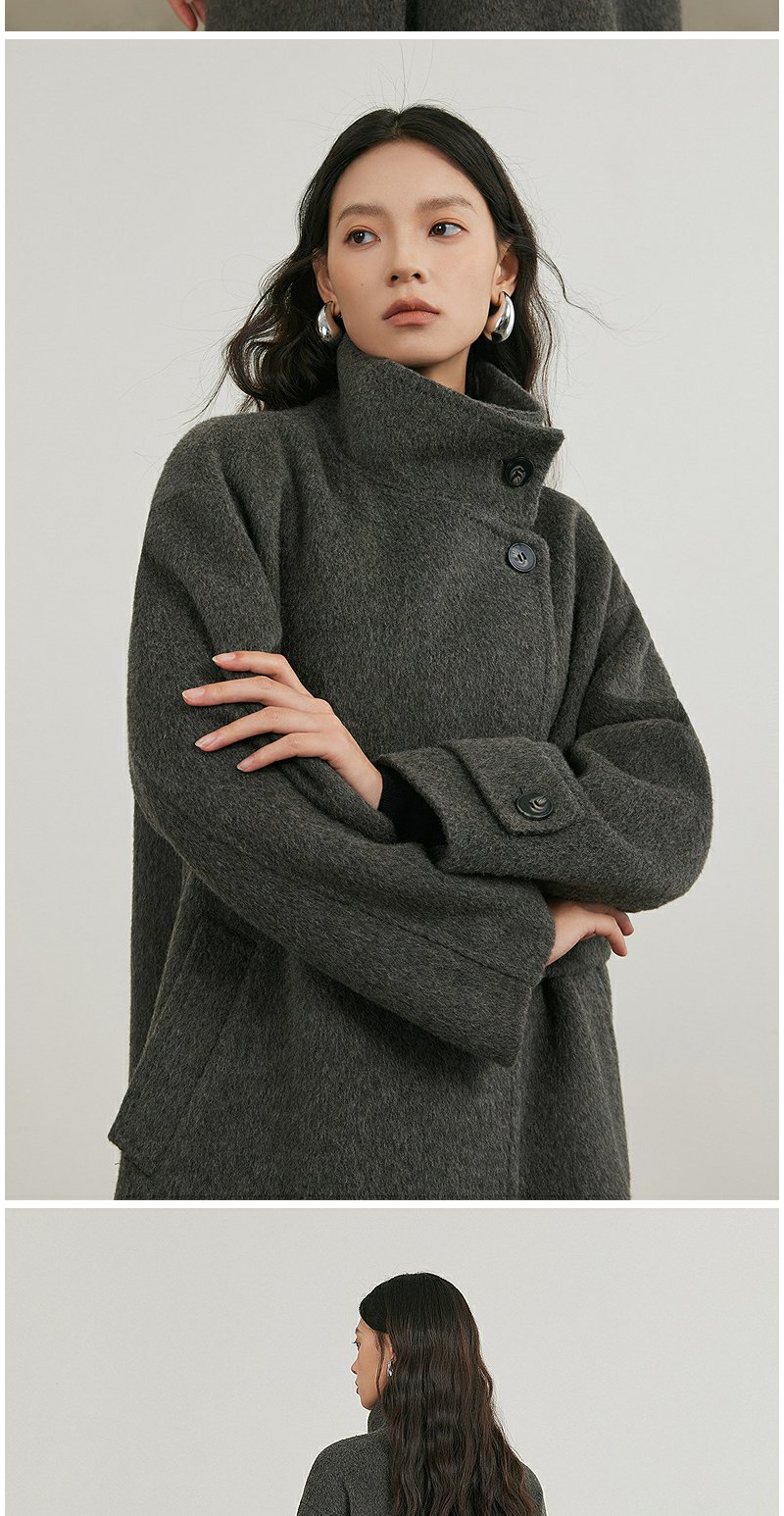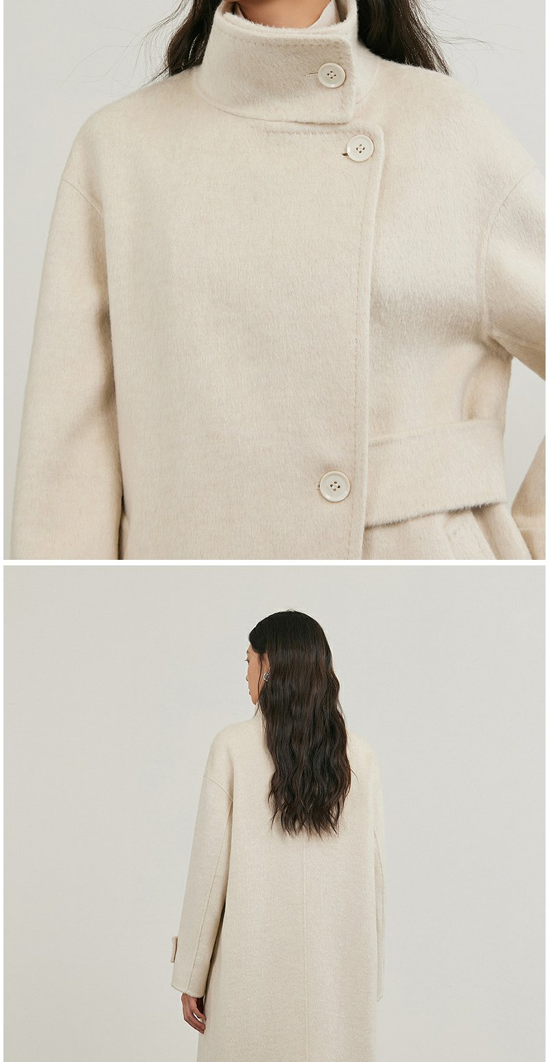 NEELLY纳俪商场同款冬新款高级感立领双面羊毛大衣女长款毛呢外套N25114N04606