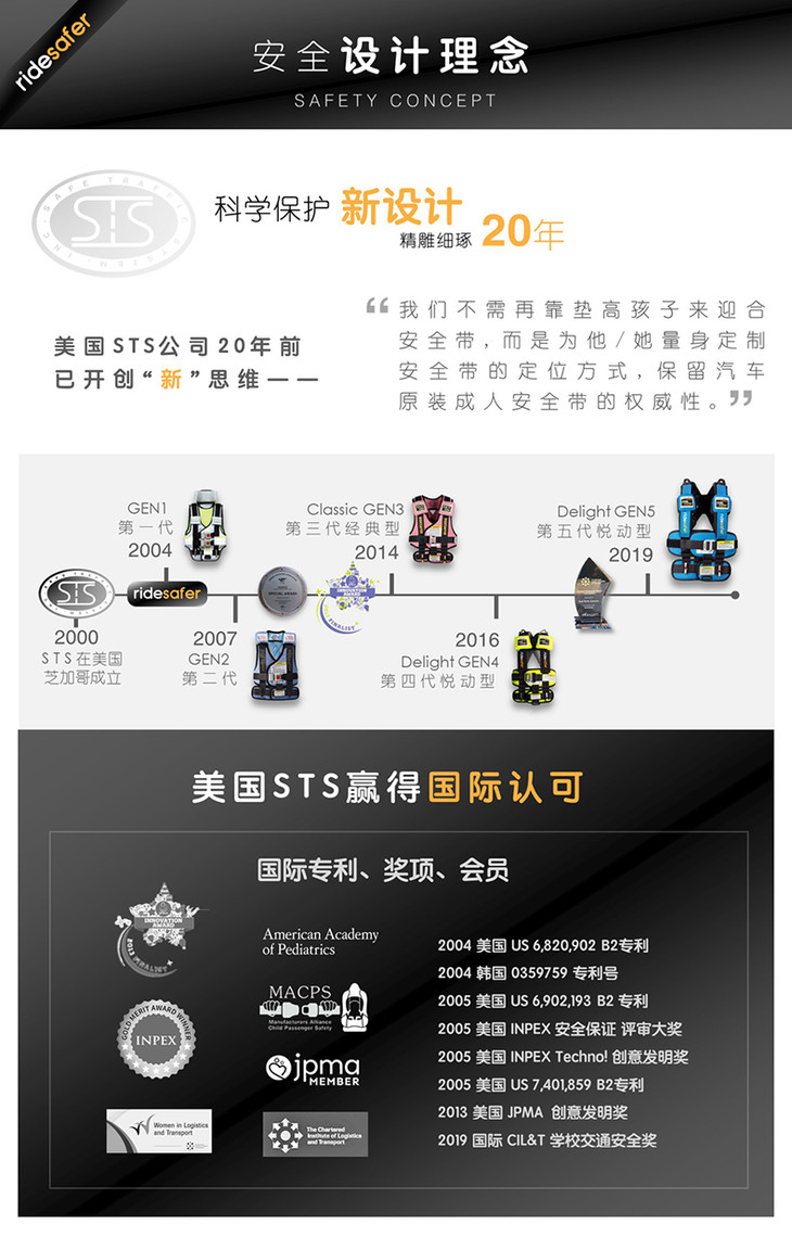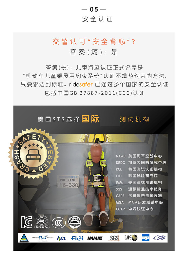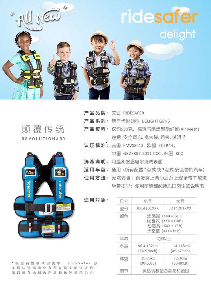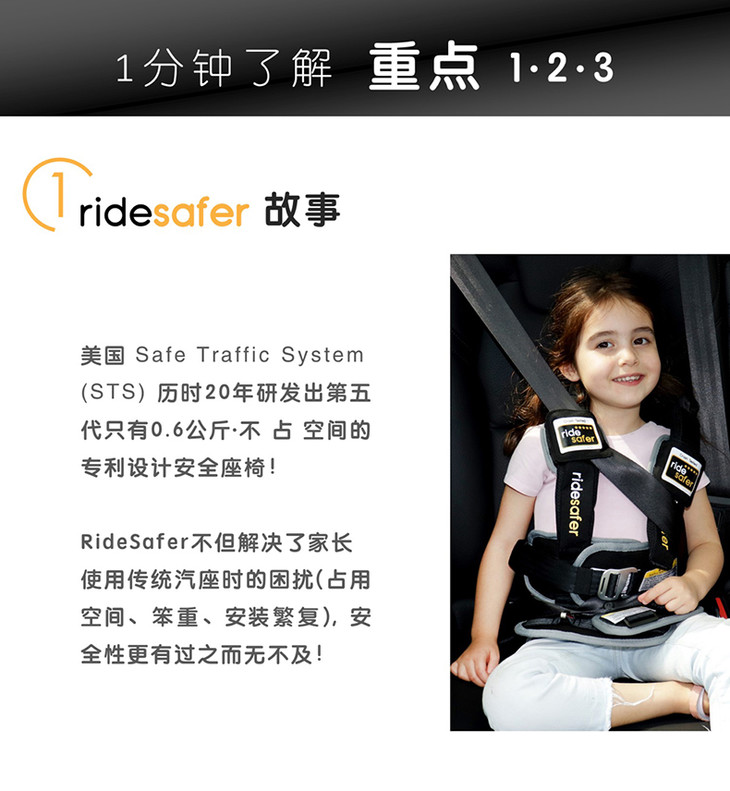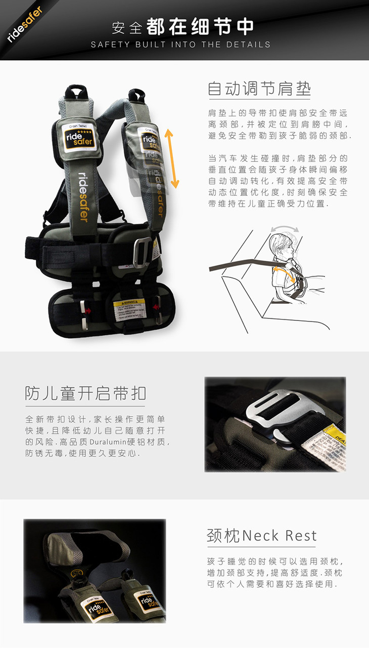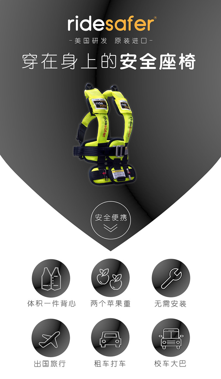 美国原装RideSafer/艾适 新款穿戴式汽车儿童安全座椅GEN5