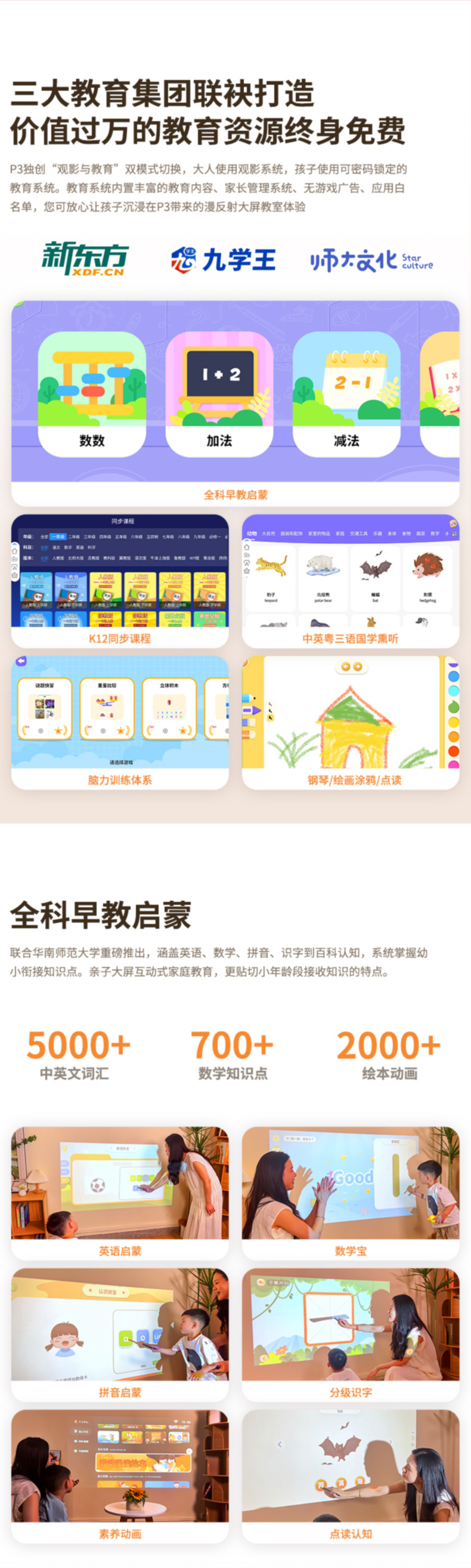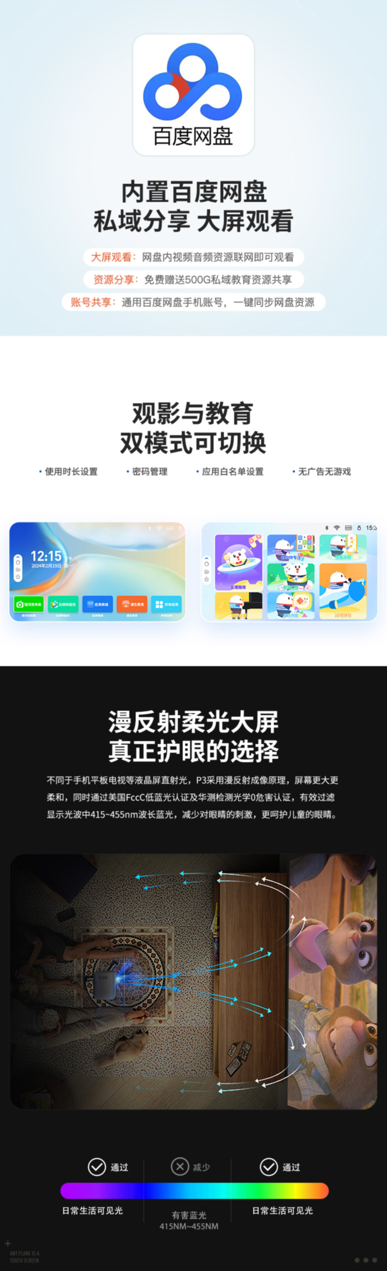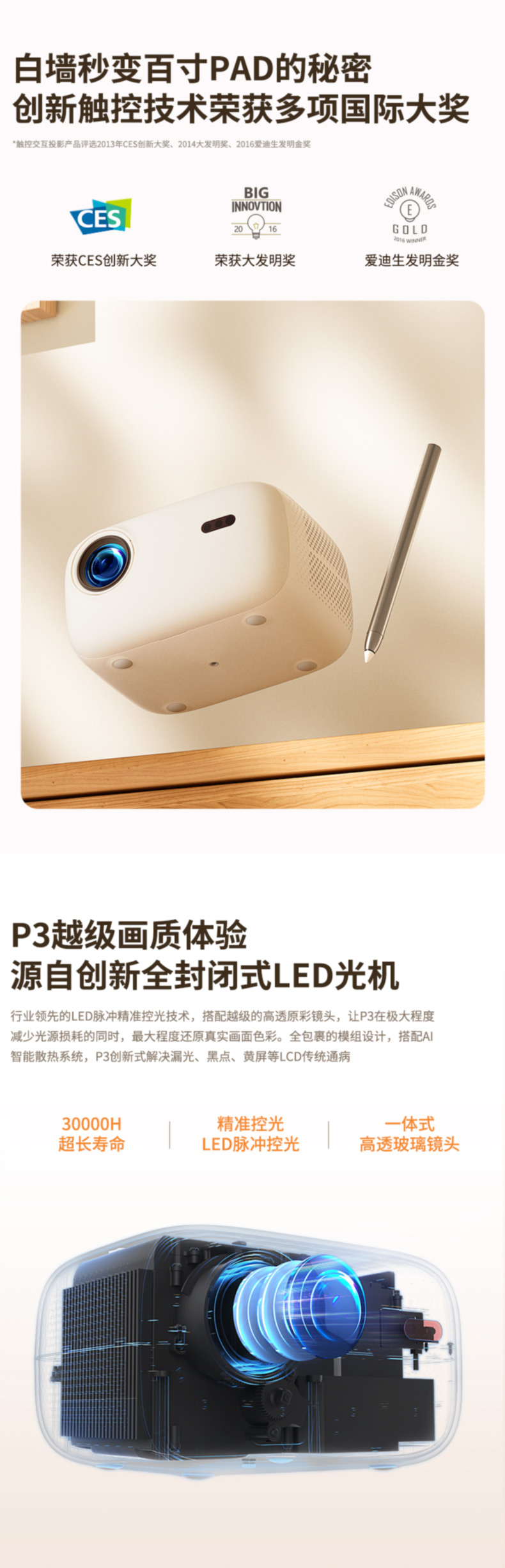 浦生P3 触控投影仪,触控互动,海量资源早教、会议、教学、娱乐兼适用