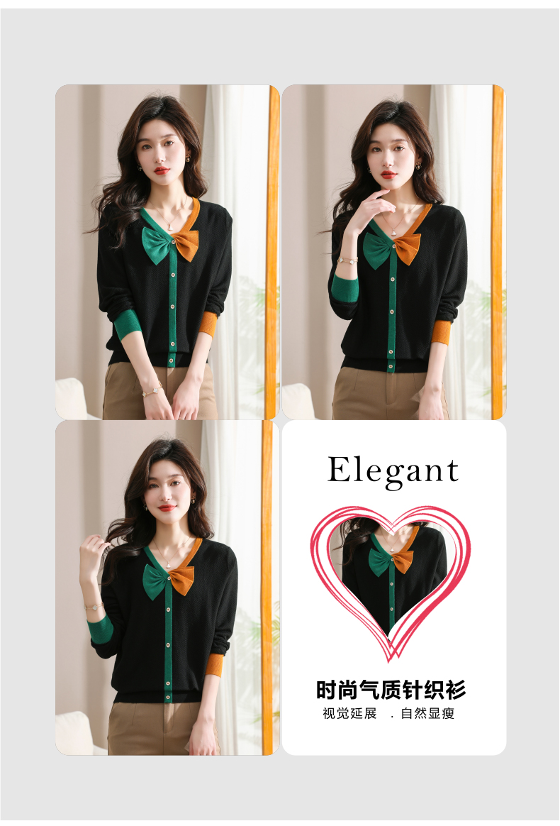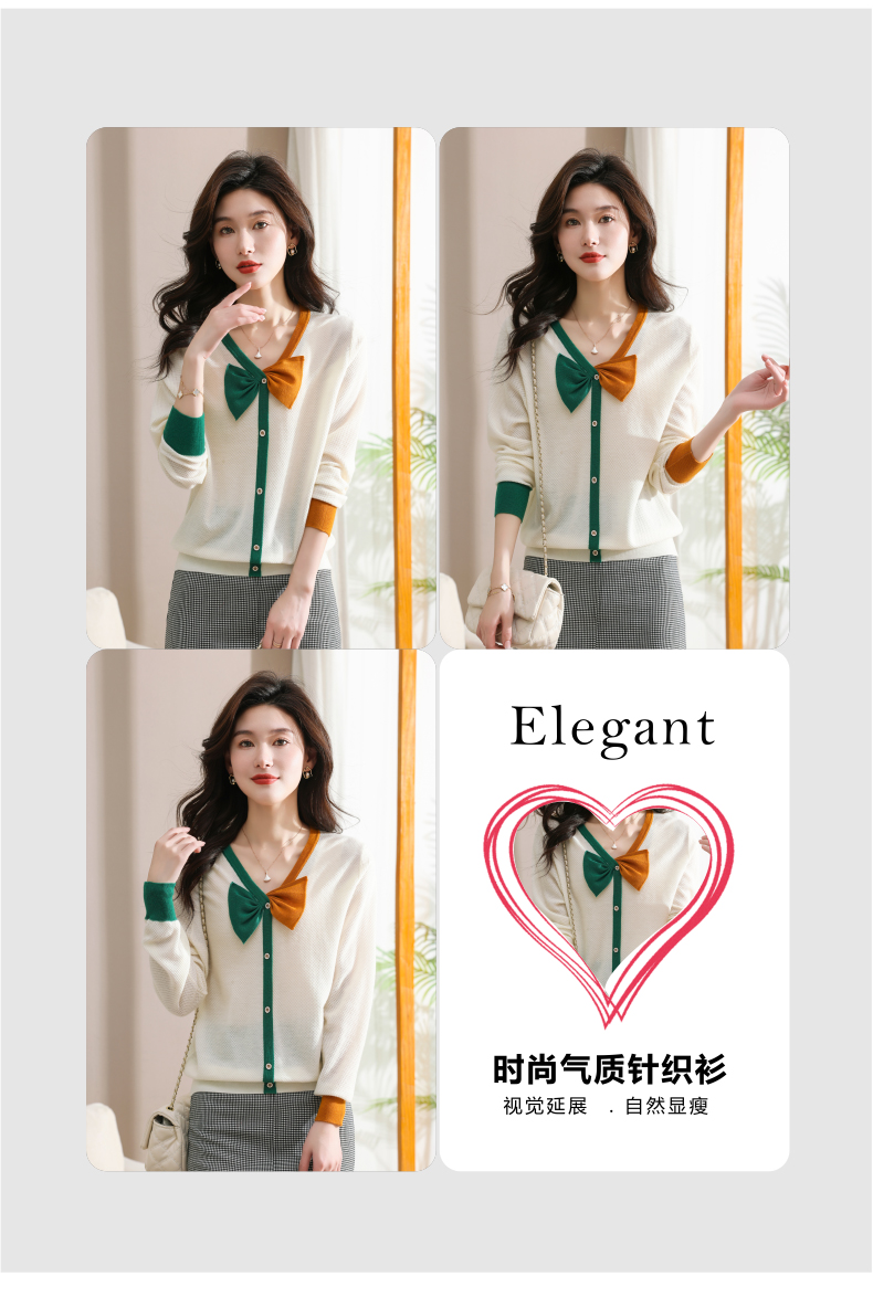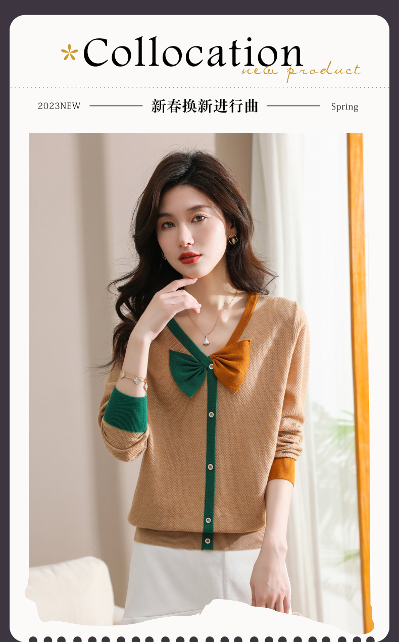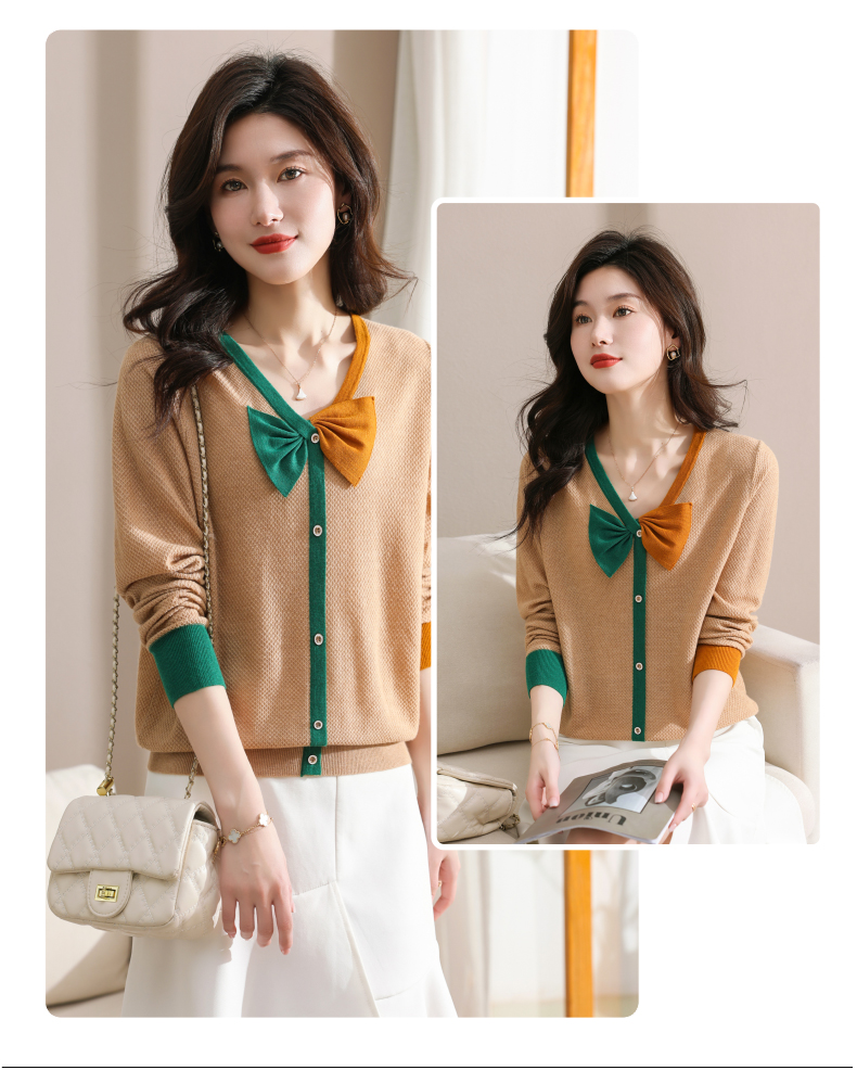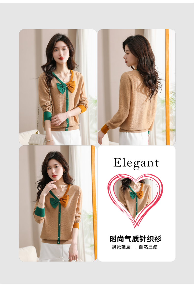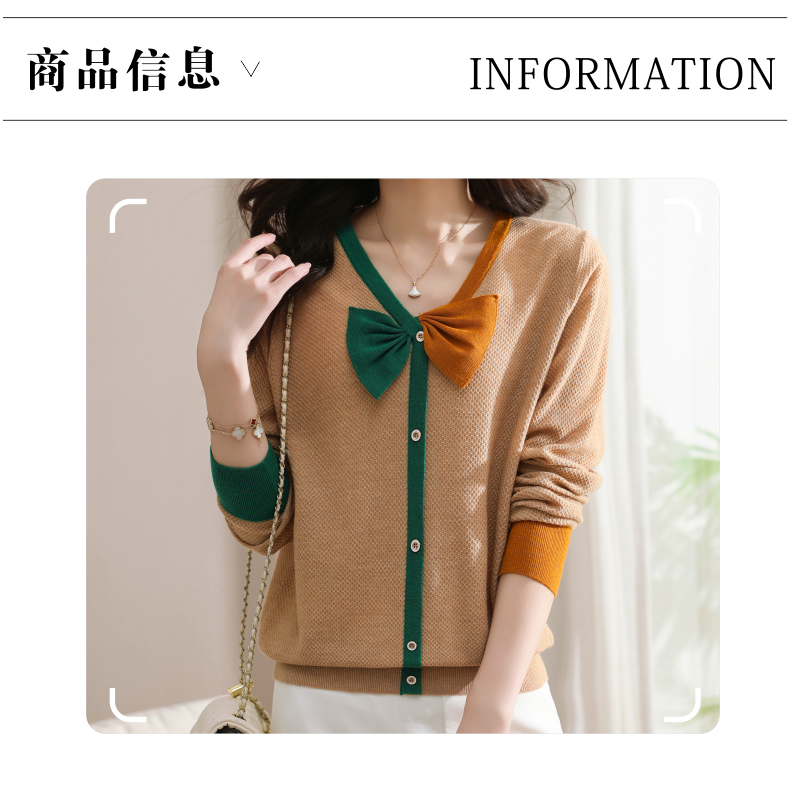 V领洋气薄款针织上衣,早春小衫时尚蝴蝶结打底衫CC-925