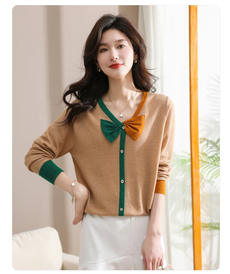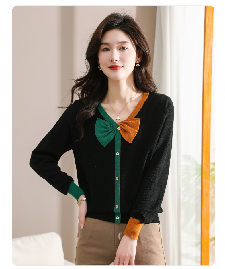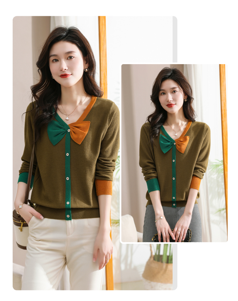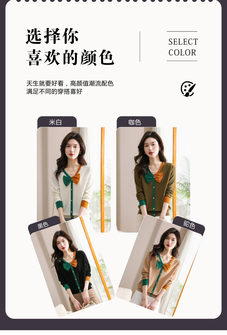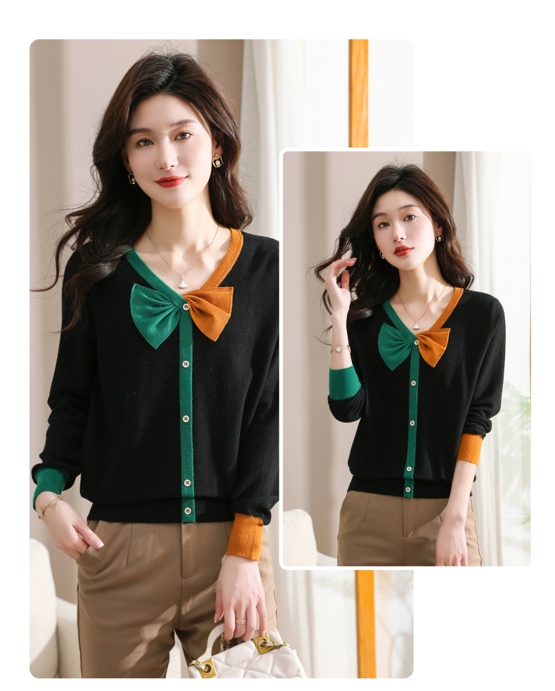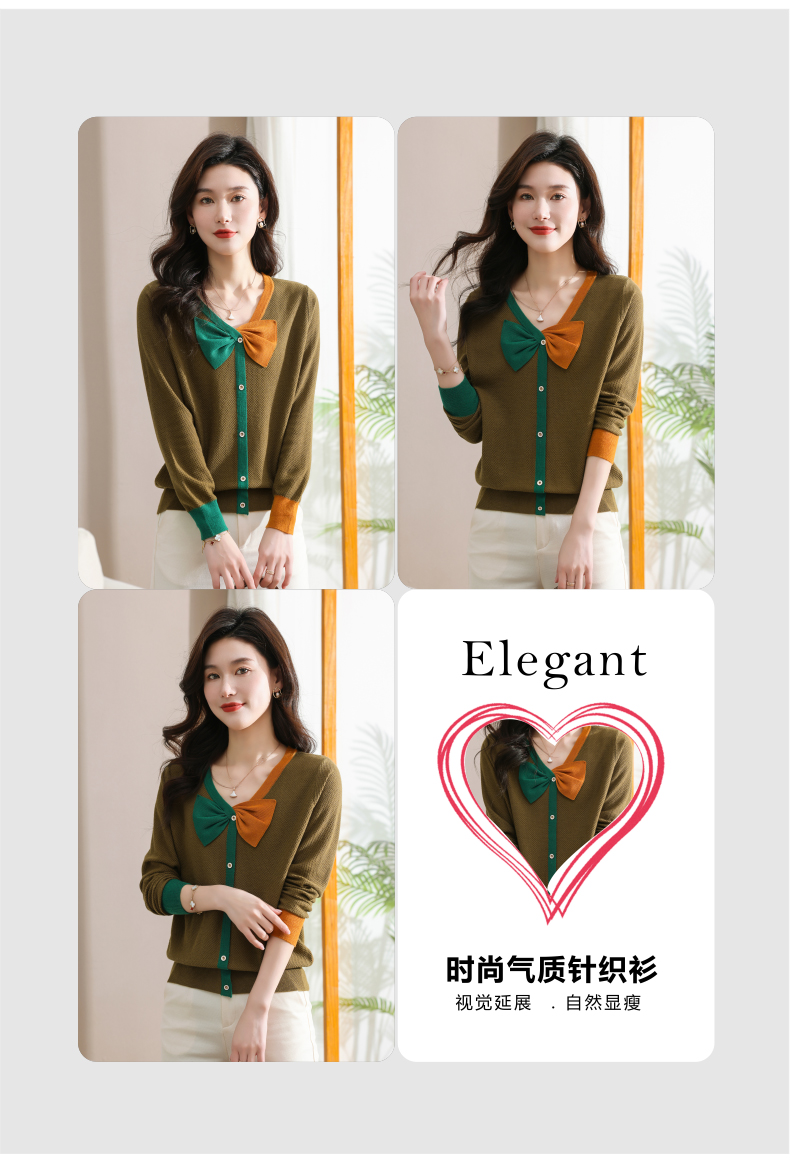 V领洋气薄款针织上衣,早春小衫时尚蝴蝶结打底衫CC-925
