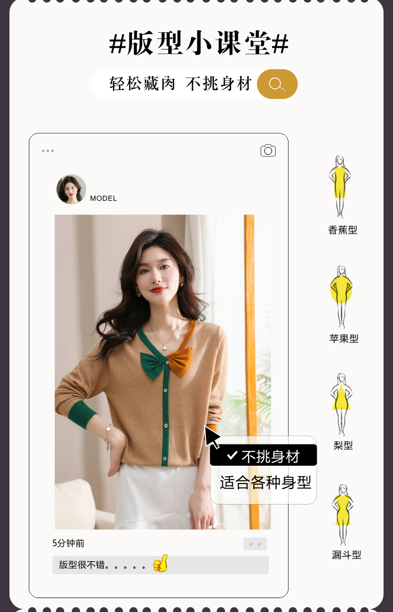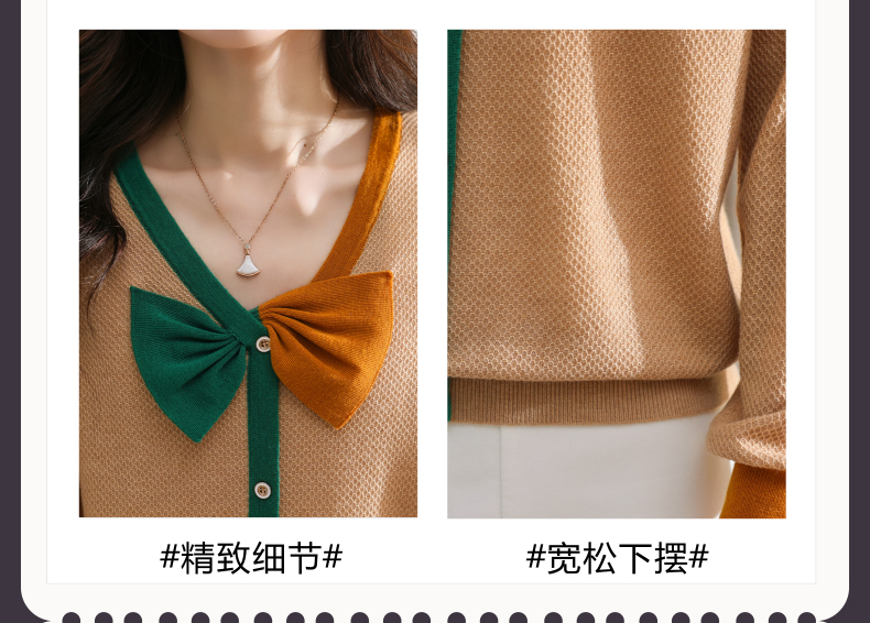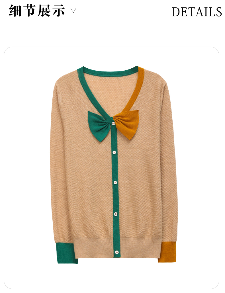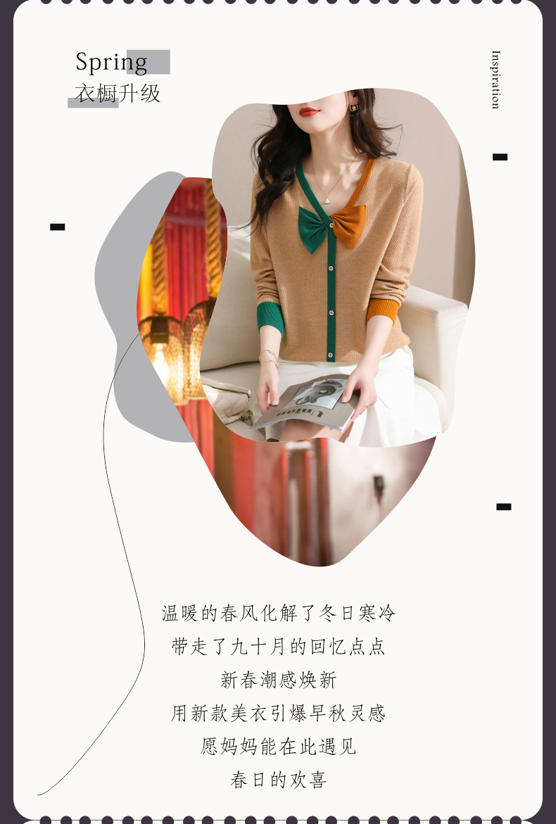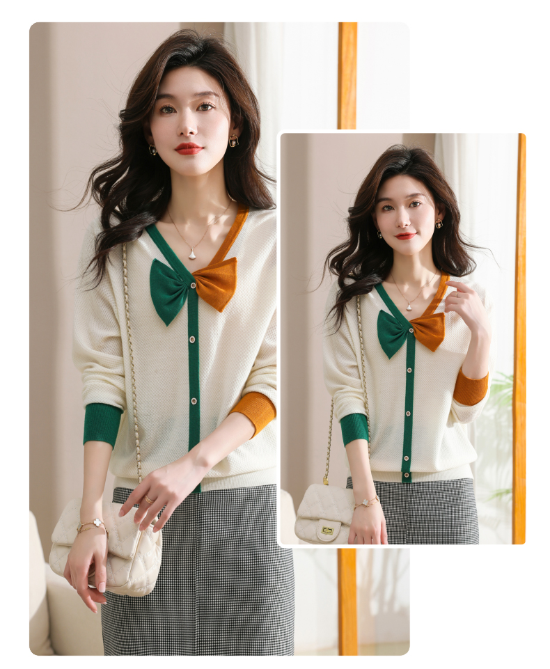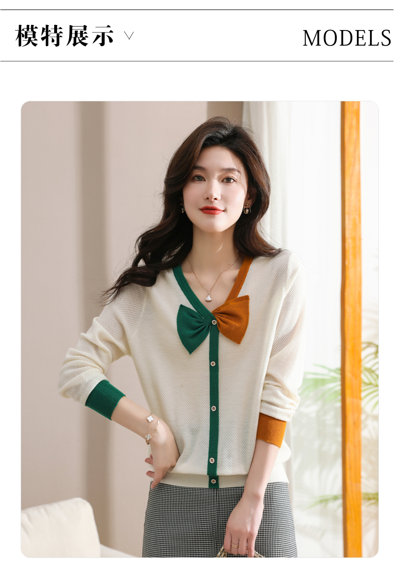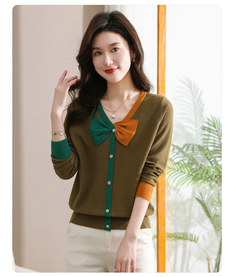 V领洋气薄款针织上衣,早春小衫时尚蝴蝶结打底衫CC-925