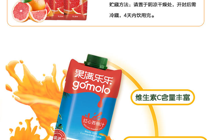 果满乐乐红心西柚汁1L/盒