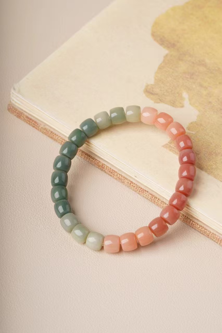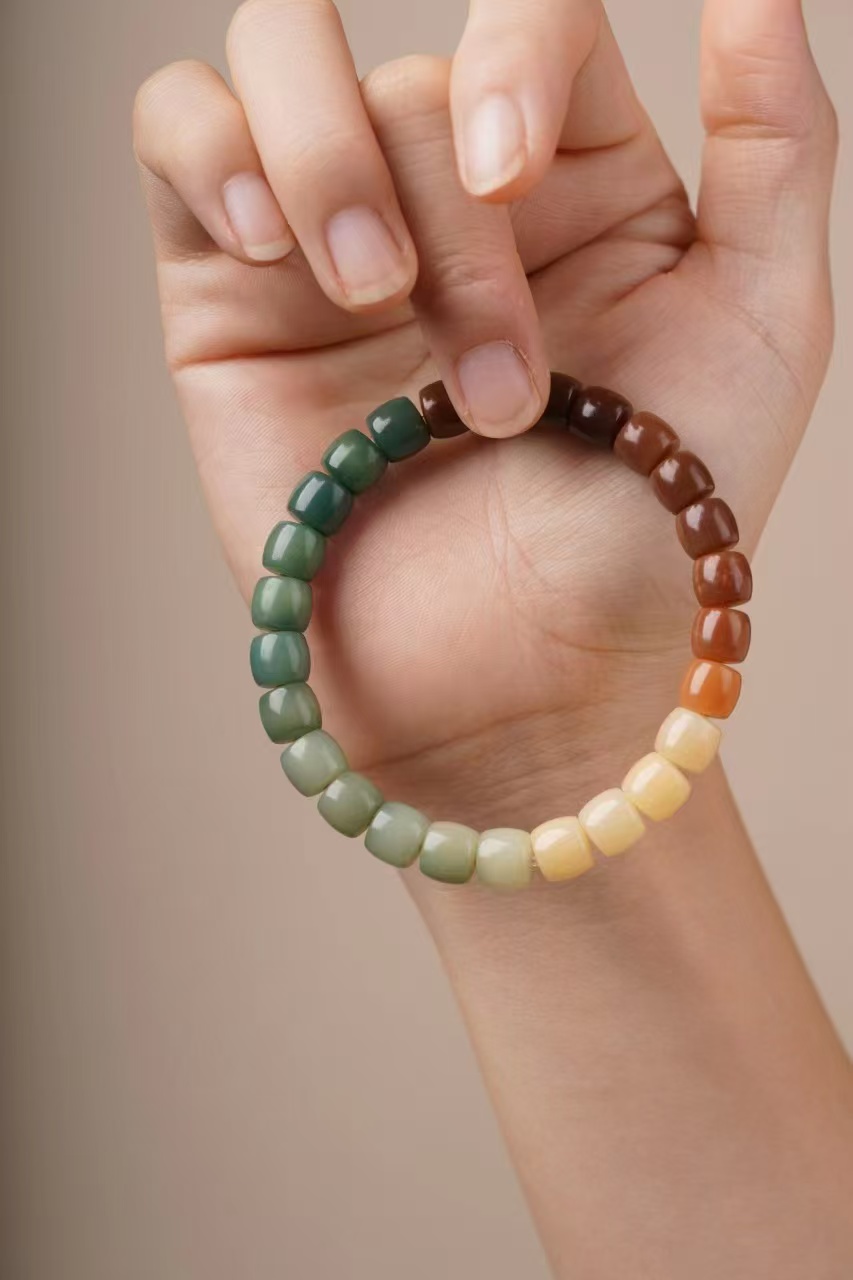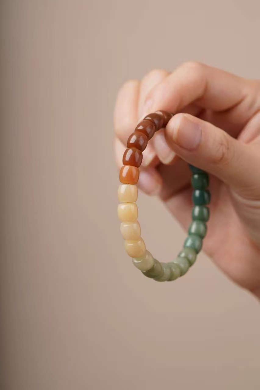 天然菩提根桶珠双拼色糖果色直切手珠手串