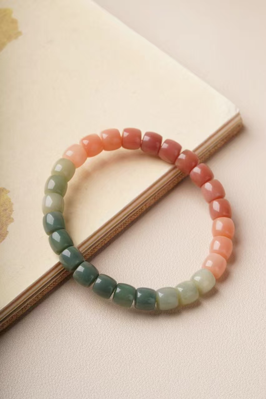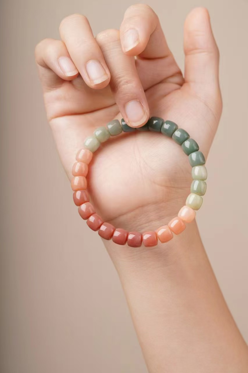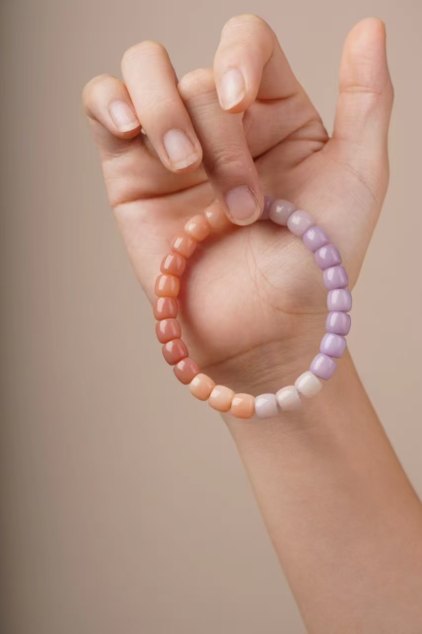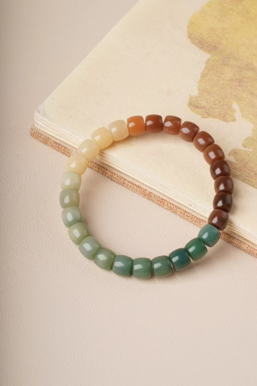 天然菩提根桶珠双拼色糖果色直切手珠手串