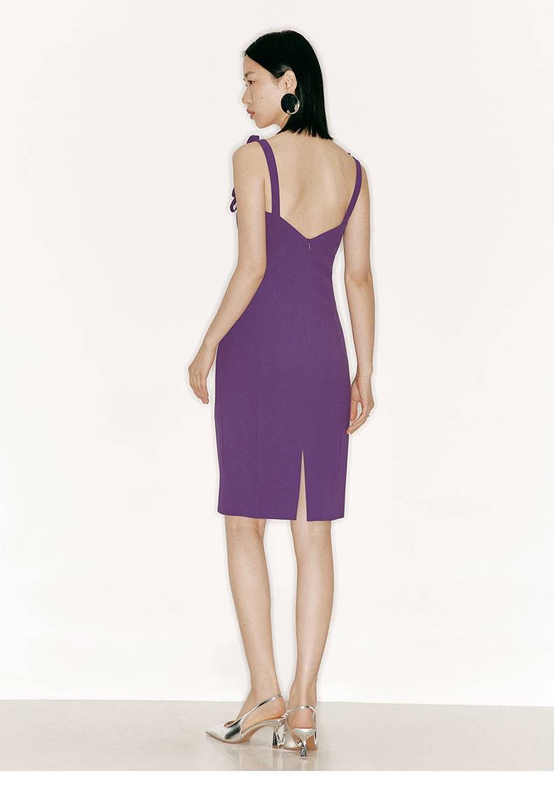 【猫科动物】蝴蝶结吊带方领修身连衣裙/23000036A