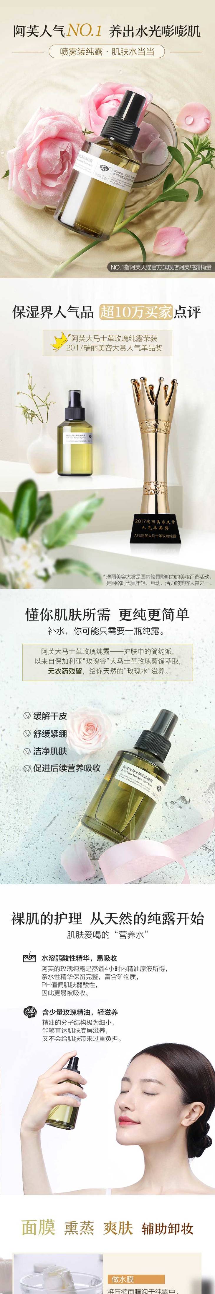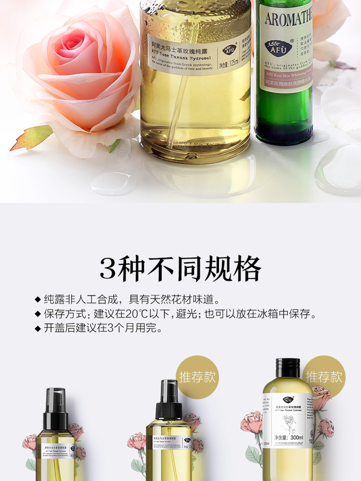阿芙大马士革玫瑰纯露 可以喝的纯露 精油玫瑰水补水保湿喷雾天然爽肤水女花水