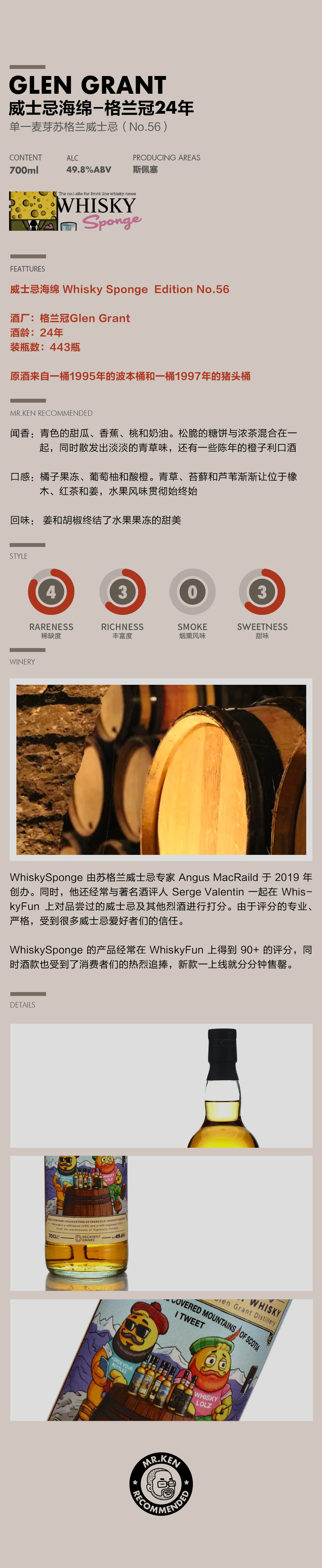 【179900积分】威士忌海绵-格兰冠(Glen Grant)24年单一麦芽苏格兰威士忌No.56·(全球购版本)