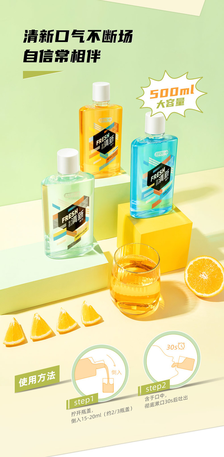专效清新漱口水500ml 清新去口气口臭 深洁口腔