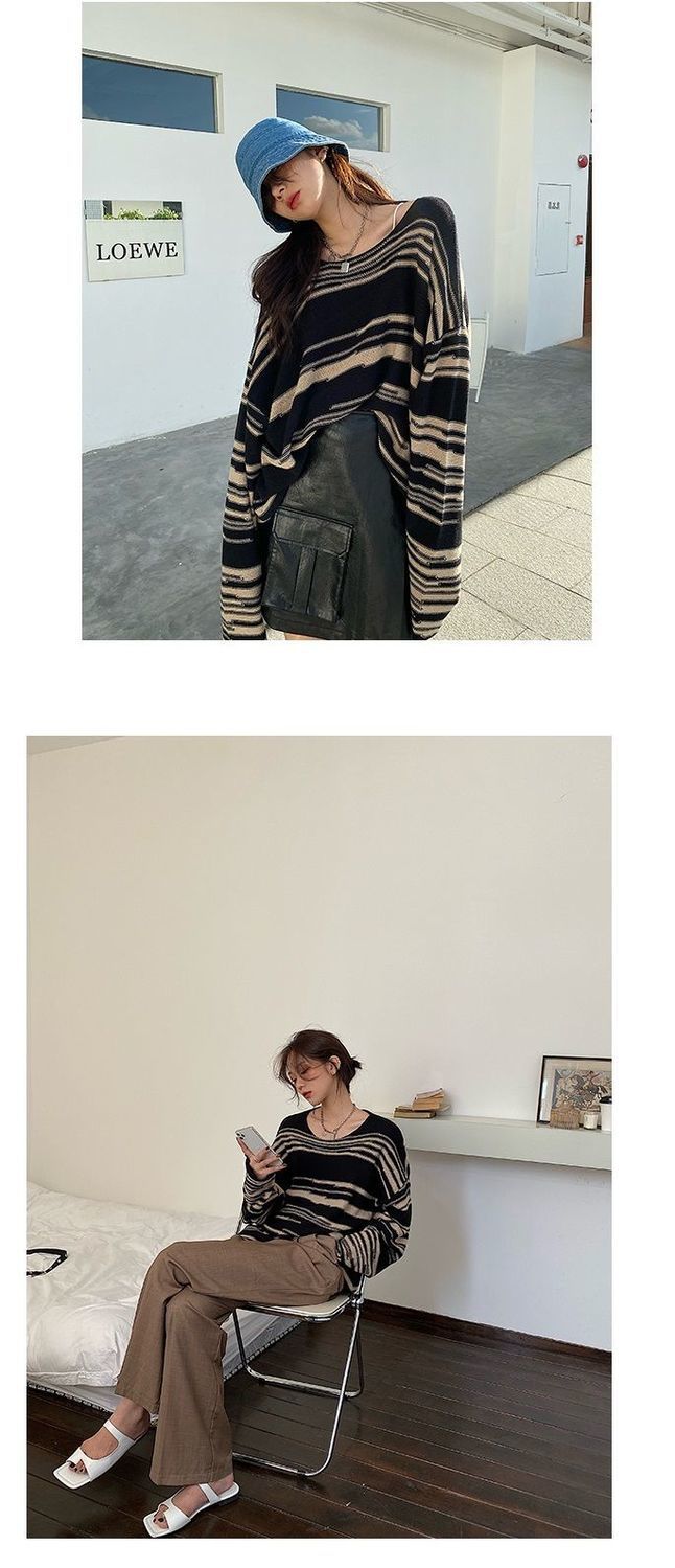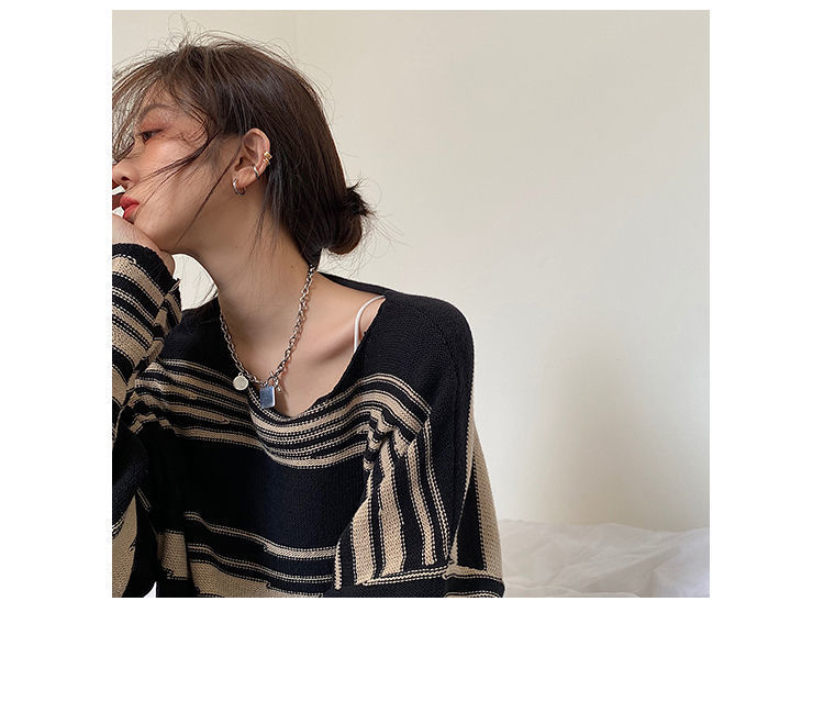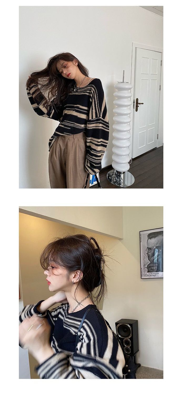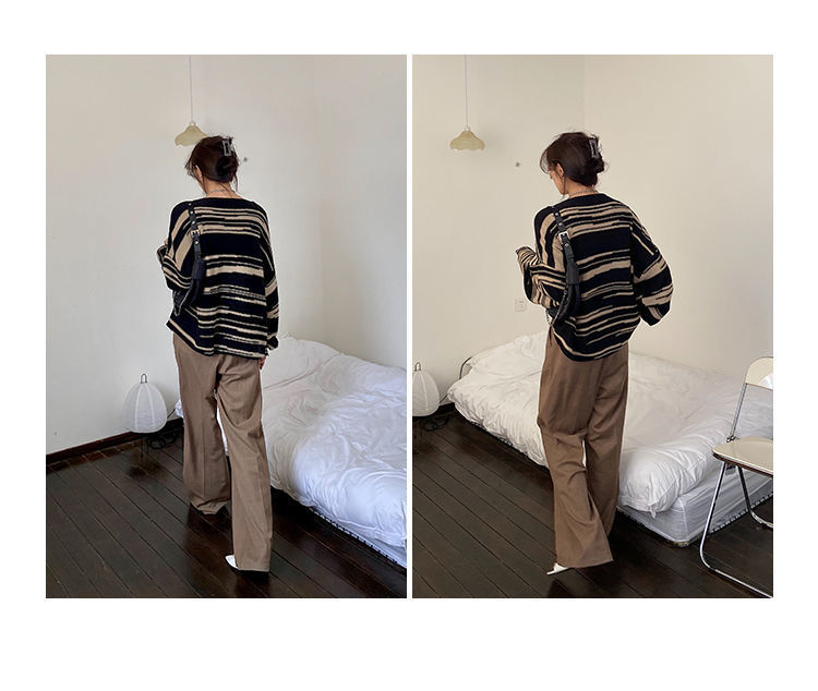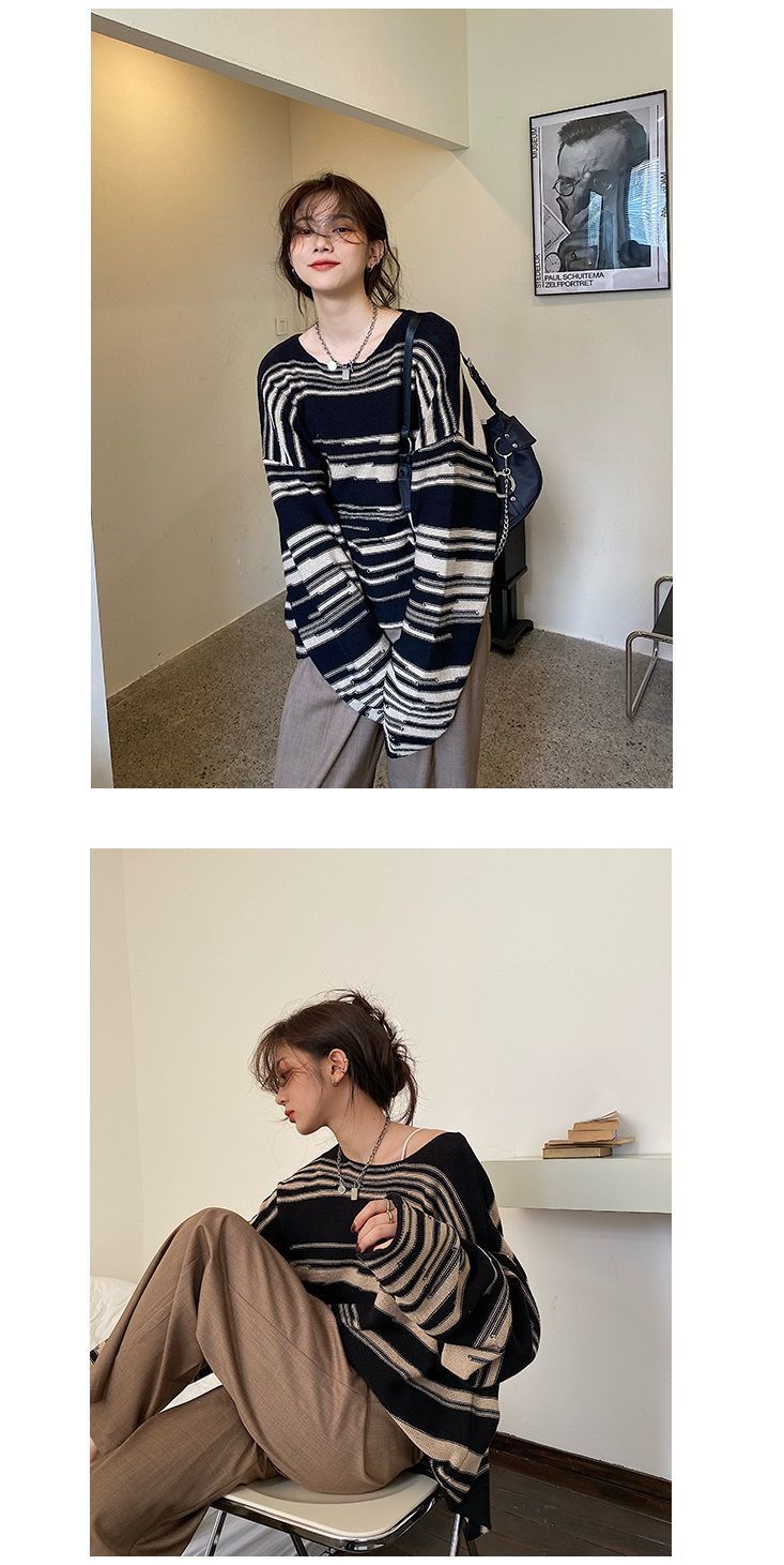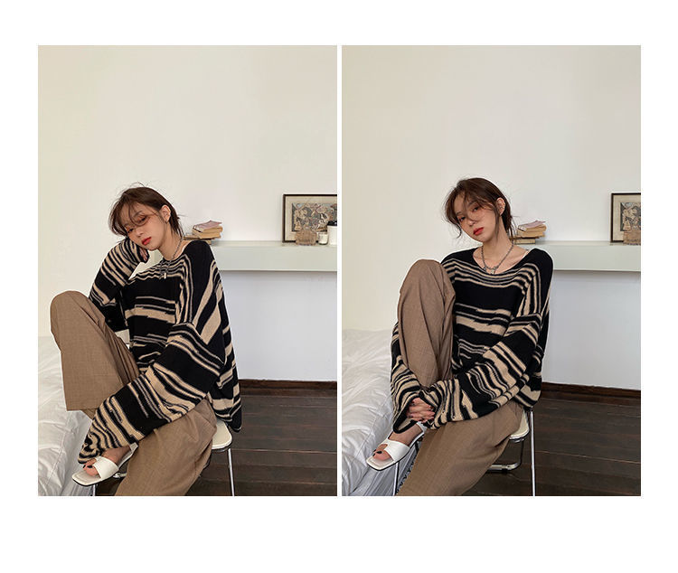 【韩系ins慵懒风条纹毛衣】2023秋冬新款 圆领宽松薄款针织套头衫 宽松版型休闲舒服