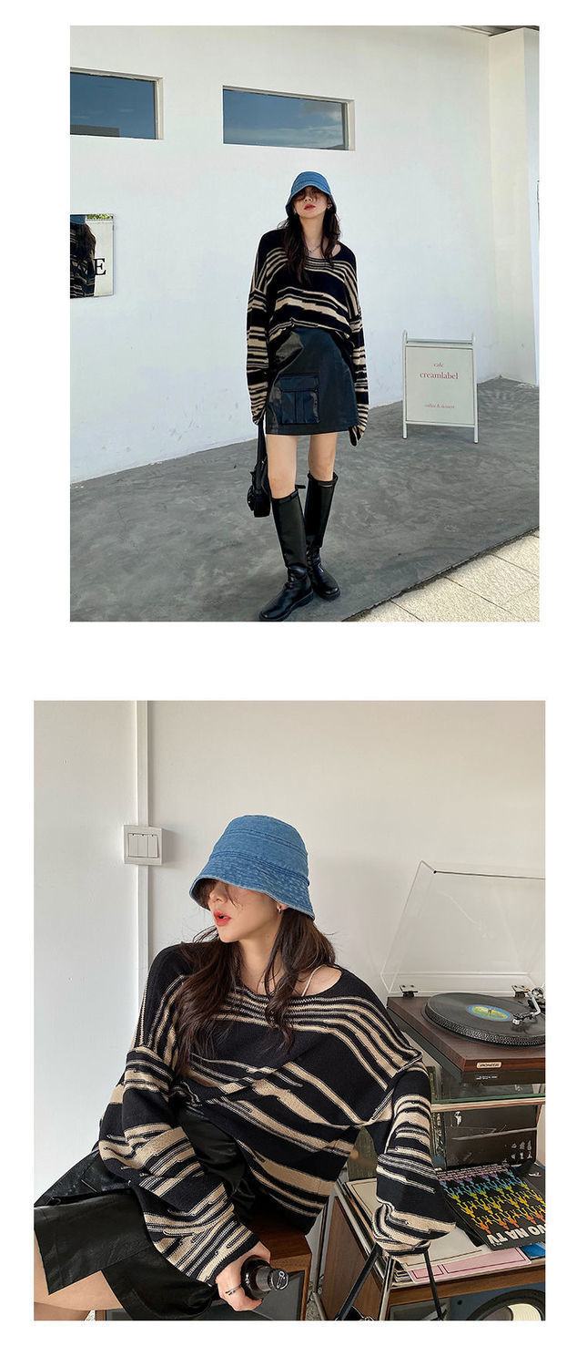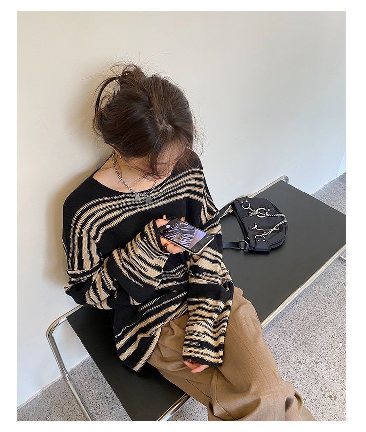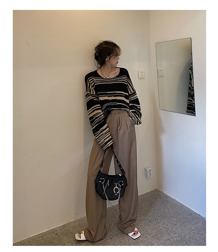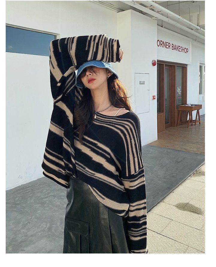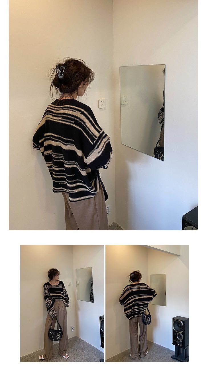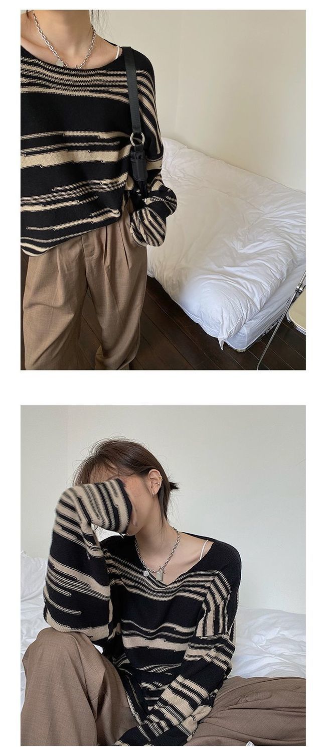 【韩系ins慵懒风条纹毛衣】2023秋冬新款 圆领宽松薄款针织套头衫 宽松版型休闲舒服