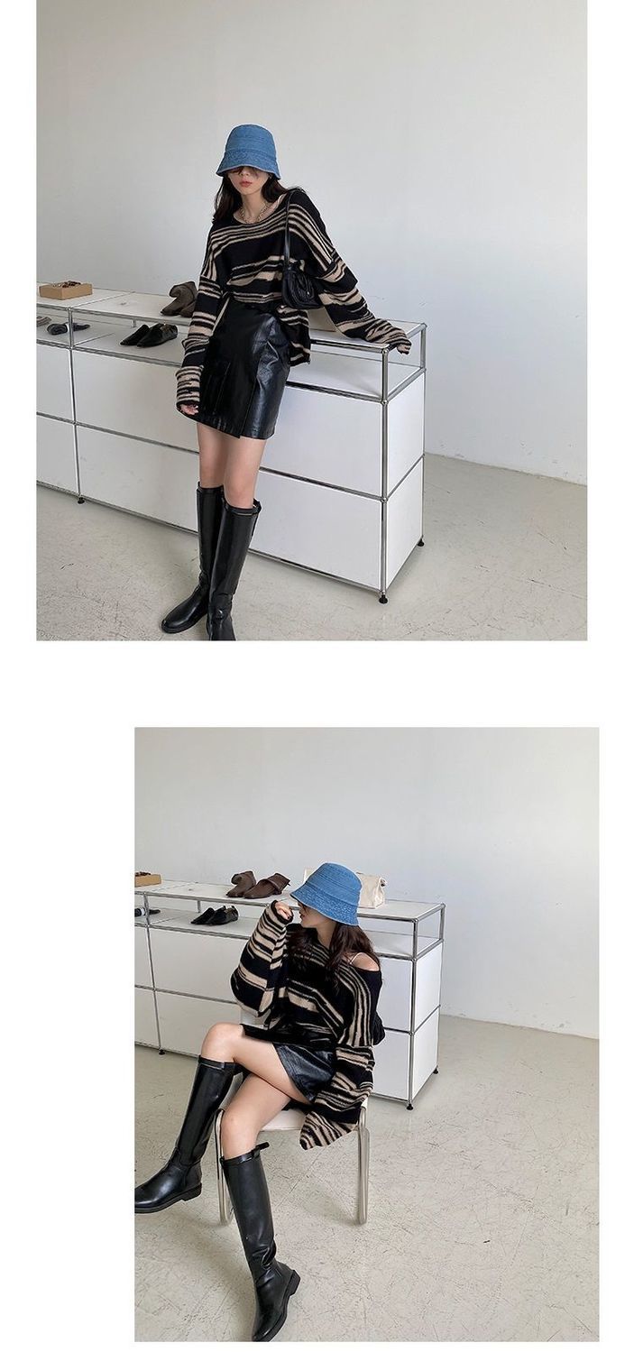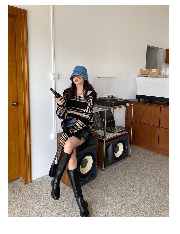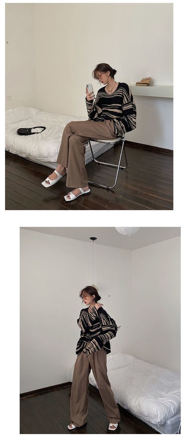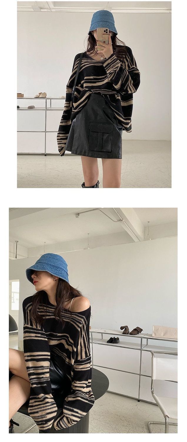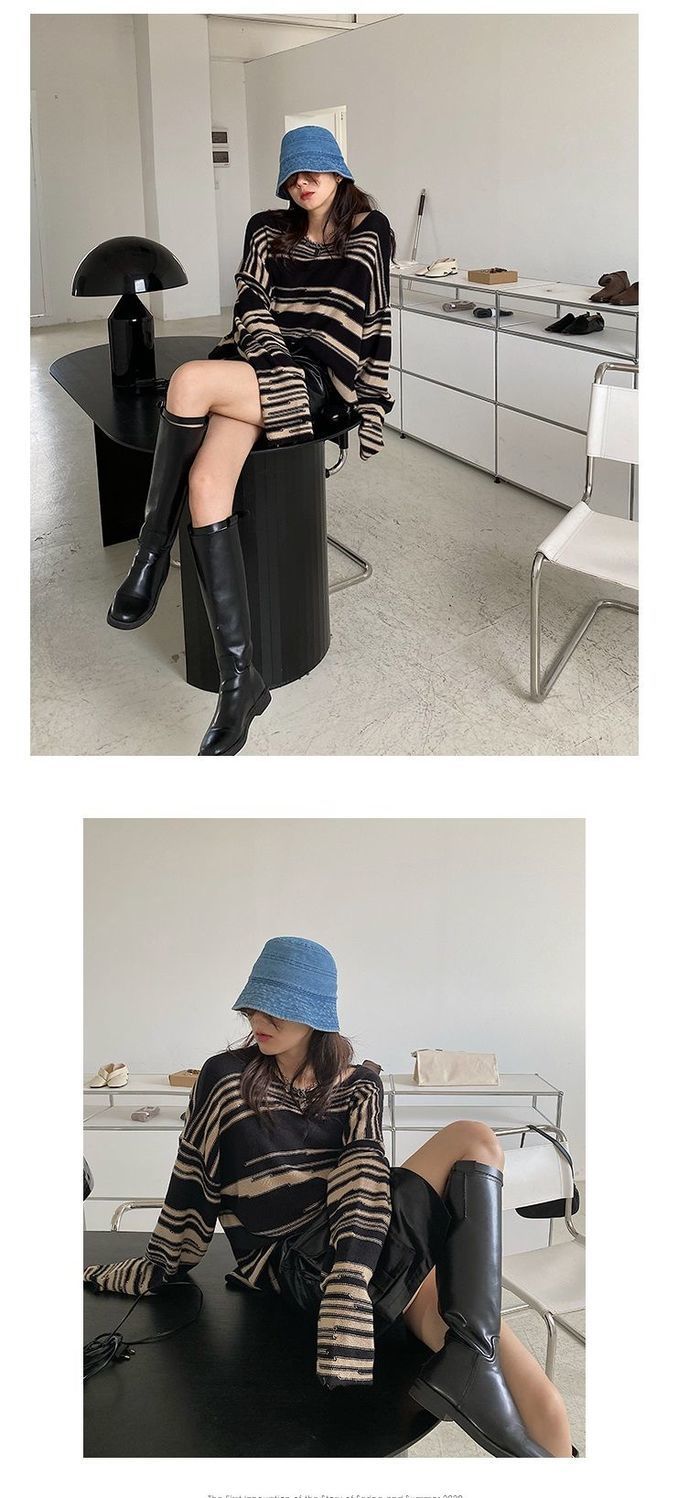 【韩系ins慵懒风条纹毛衣】2023秋冬新款 圆领宽松薄款针织套头衫 宽松版型休闲舒服