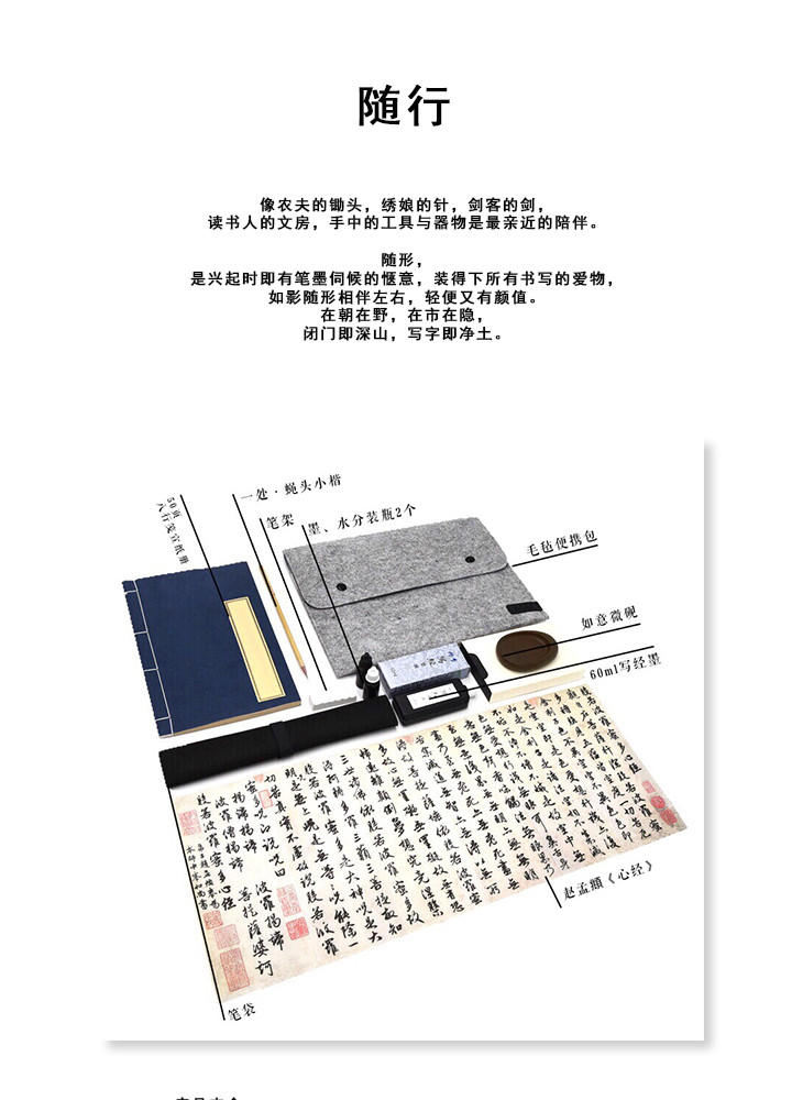 正安 小楷便携套装 文房四宝旅行装 毛笔书写 学生户外 初学者礼盒