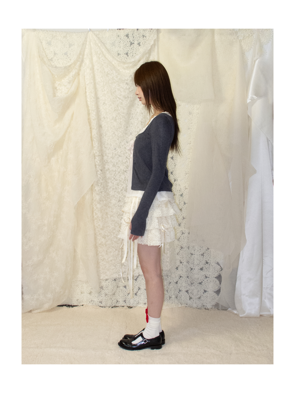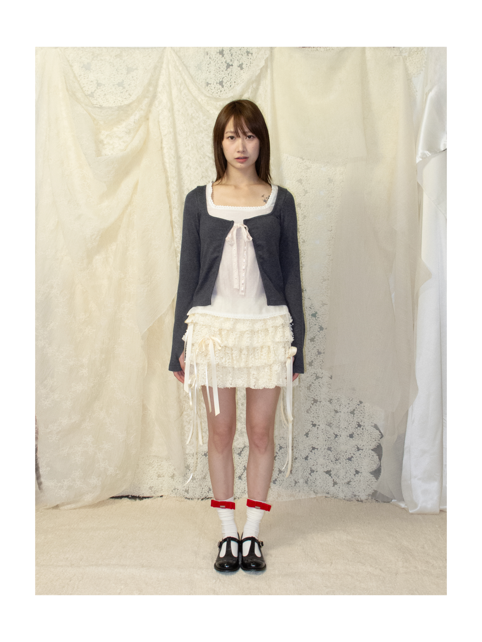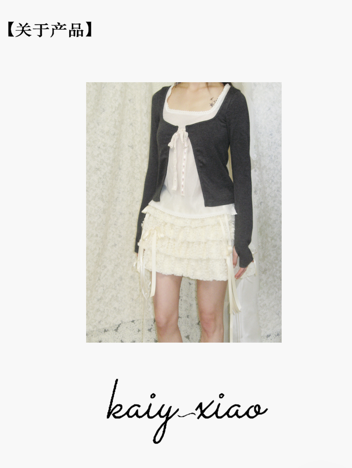 Kaiy Xiao 风信信使花边绑带开衫