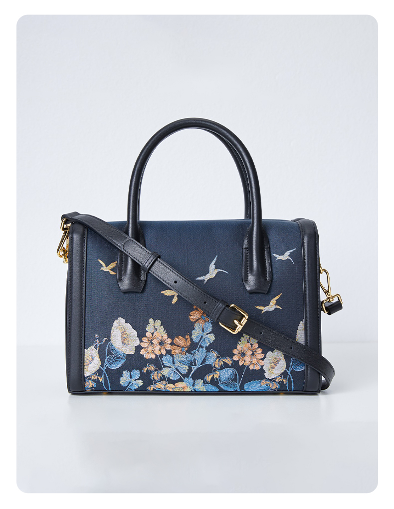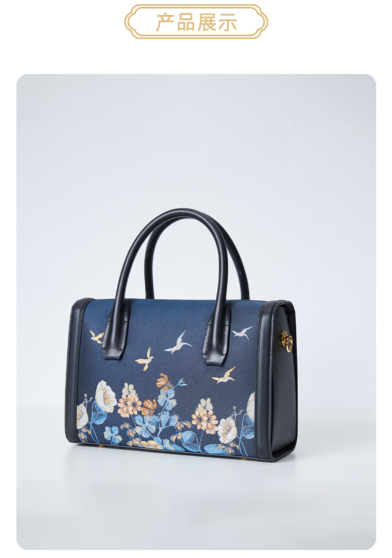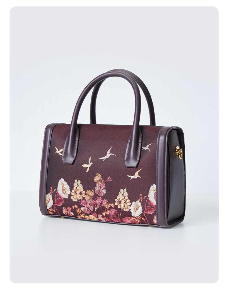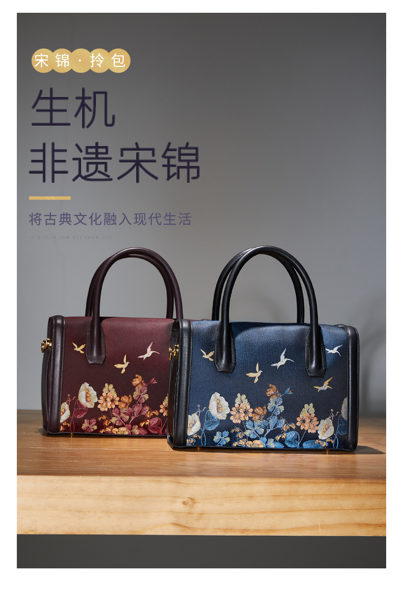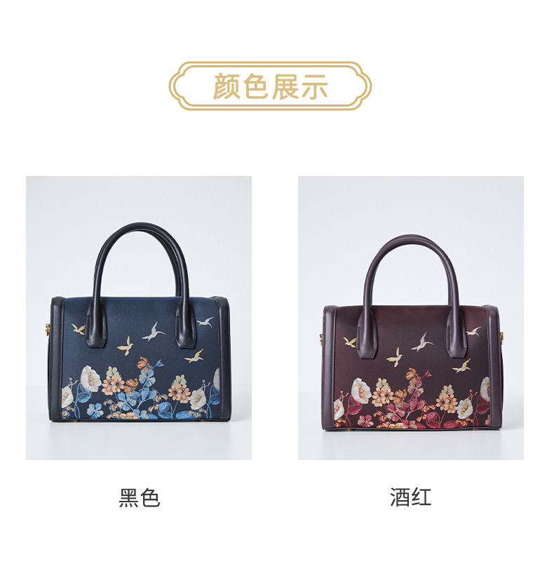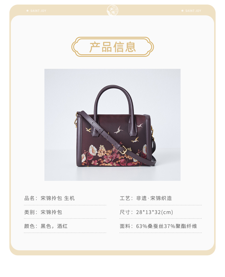 SAINTJOY/上久楷 女士宋锦拎包 黑色 酒红 生机 拎包 BWS23A0801