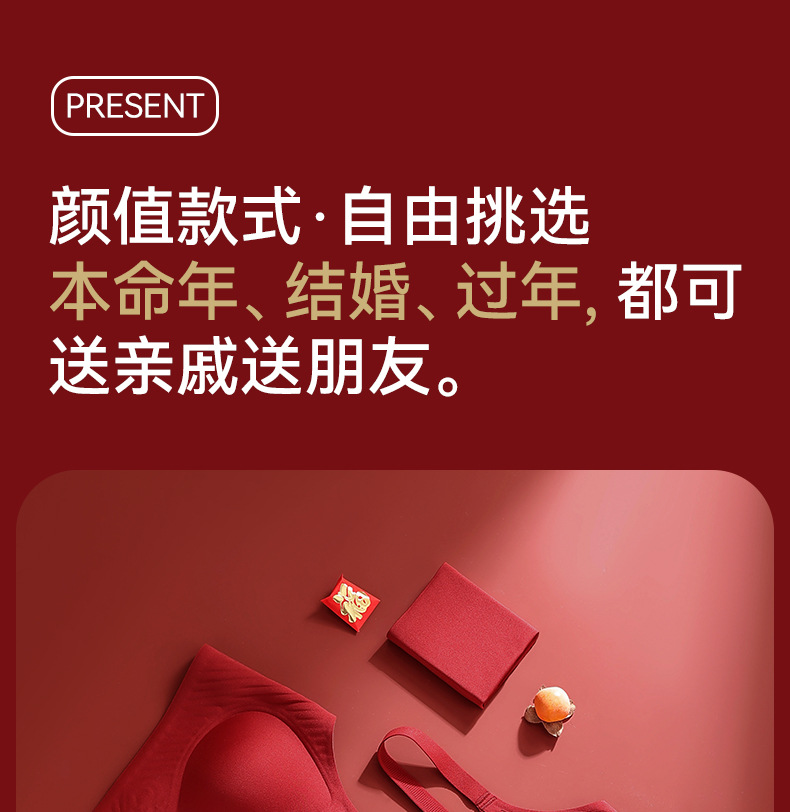 【蛇年运转】大红色无痕内衣 本命年喜庆结婚文胸套装盒装