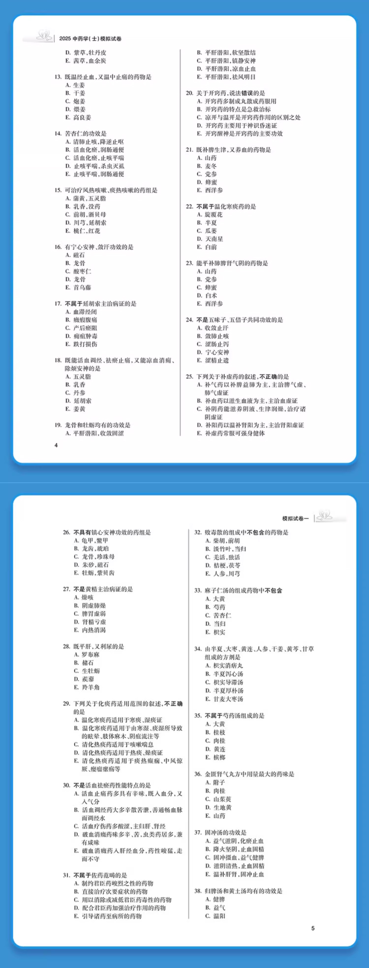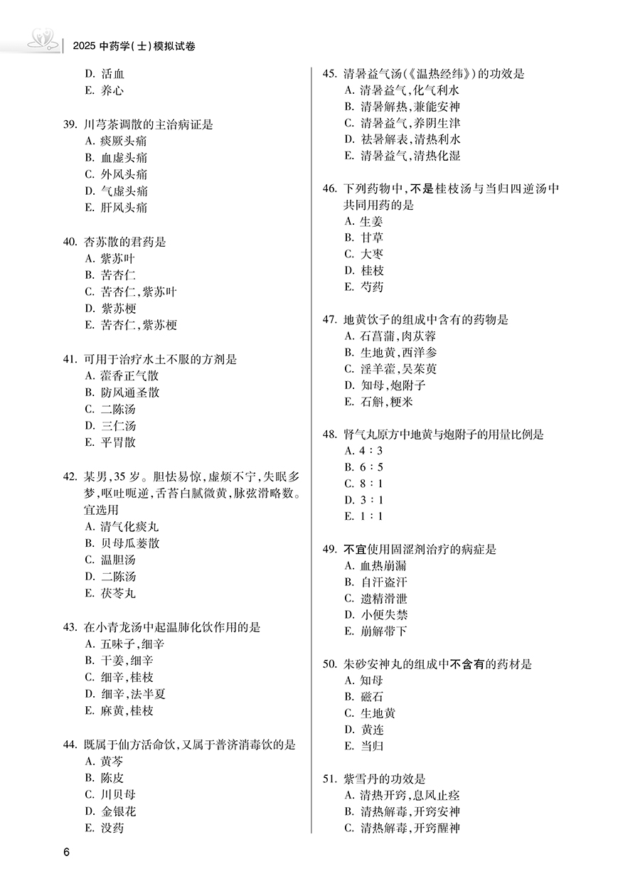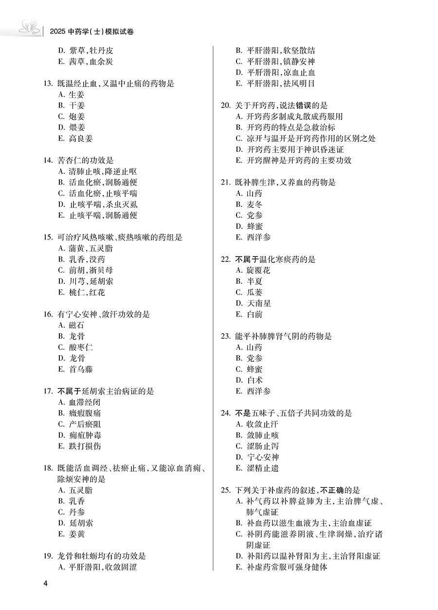 书名:2025中药学(士)模拟试卷