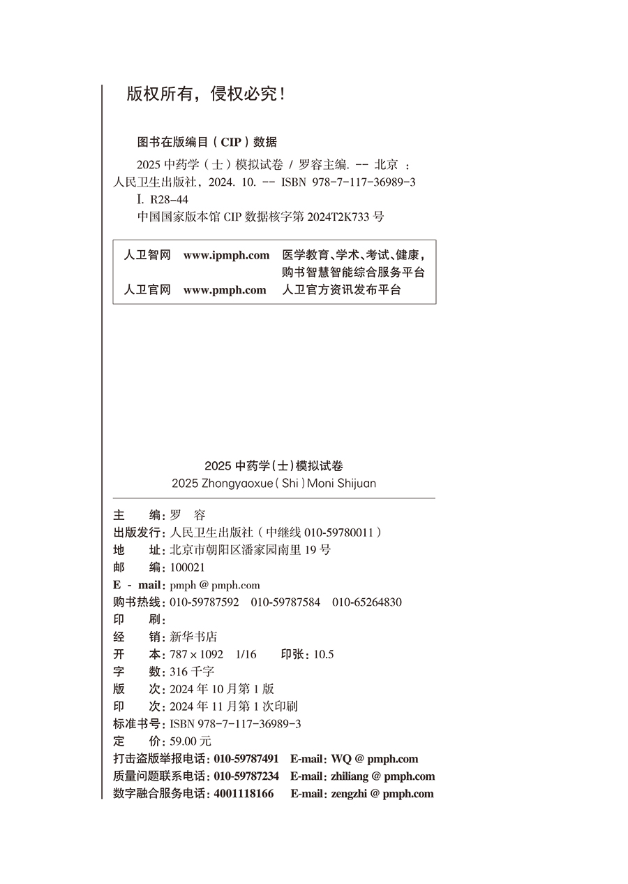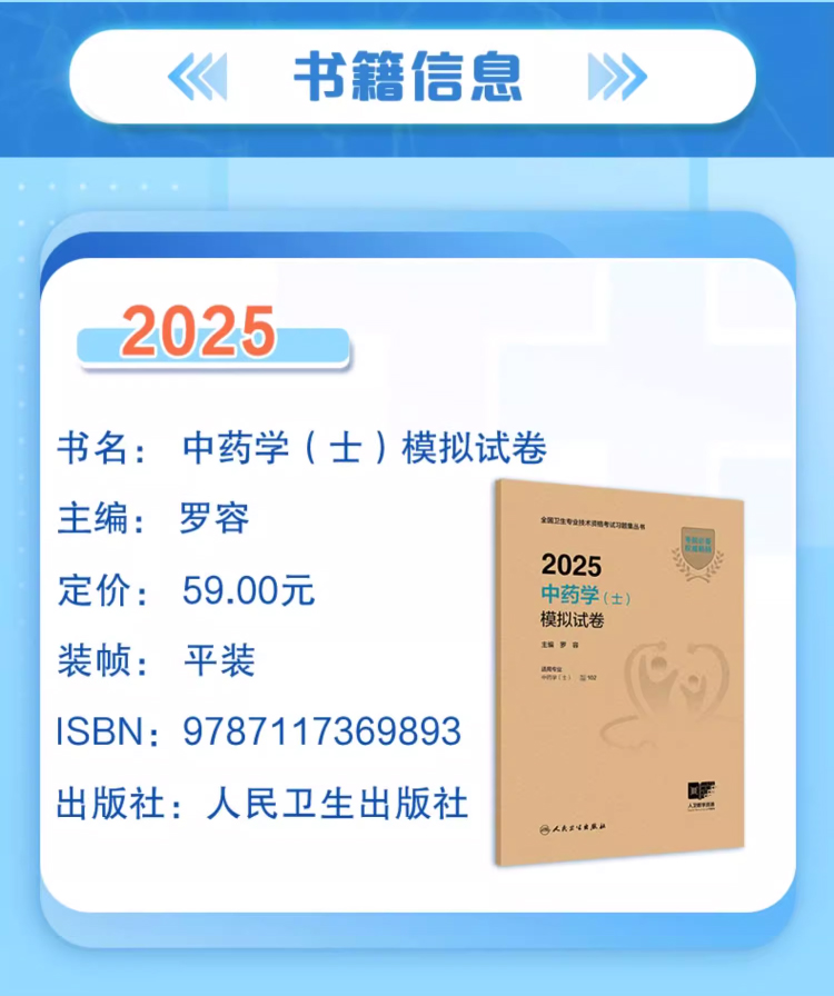 2025中药学(士)模拟试卷 主编罗容 考试用书 2025职称考试适用专业中药学(士)全国卫生专业技术资格考试习题集丛书9787117369893人民卫生出版社