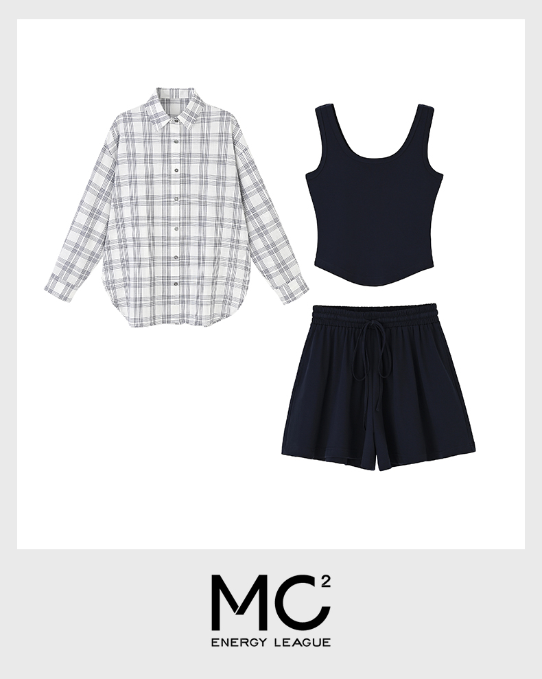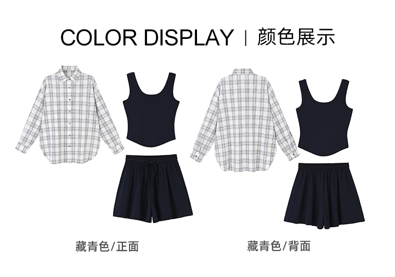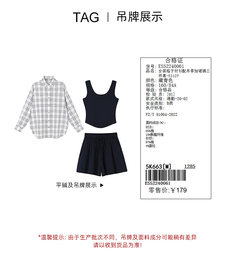女装格子衬衫配吊带加裙裤三件套-53127S5224006