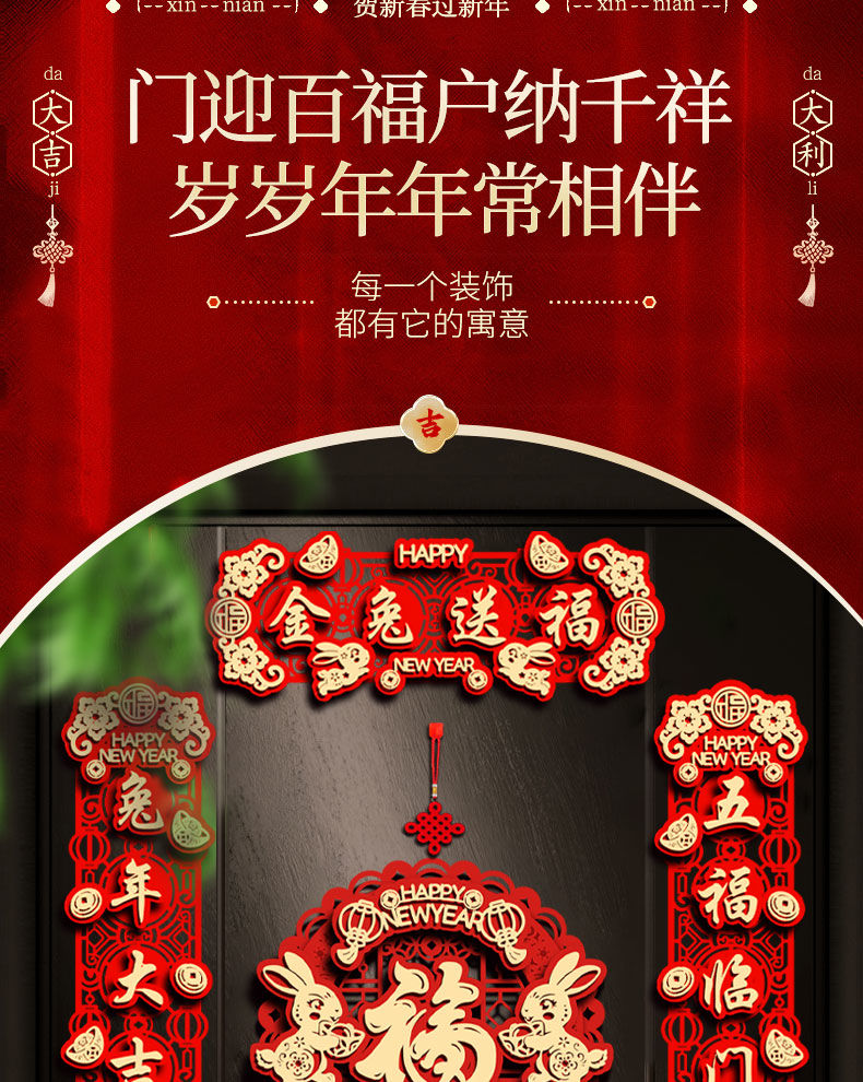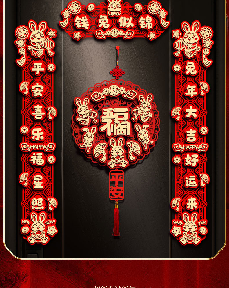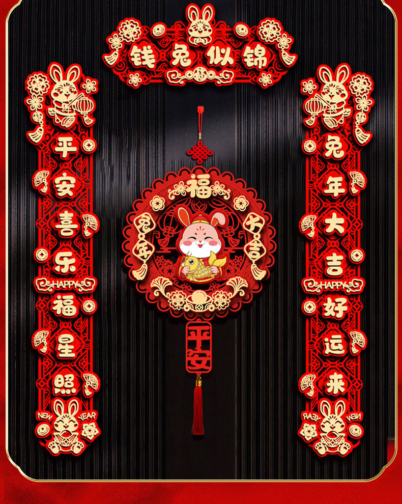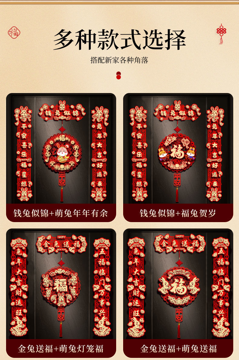 【爆款超低价预售 急单慎拍】兔年对联2023新款春节大门春联创意新年新春植绒门联室内装饰用品