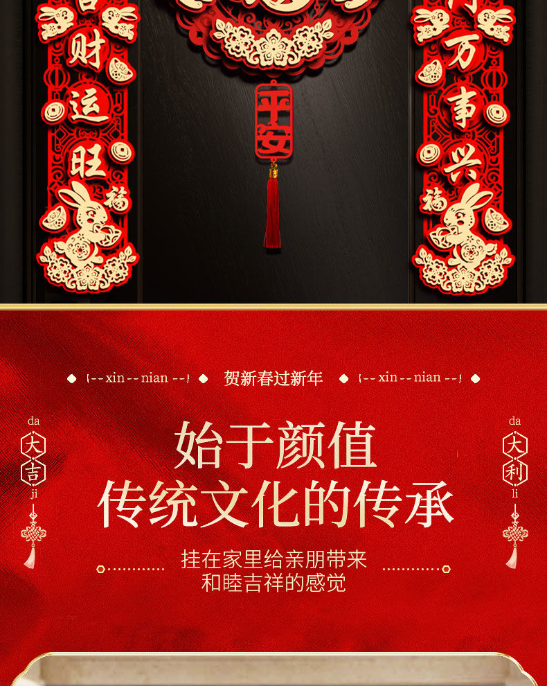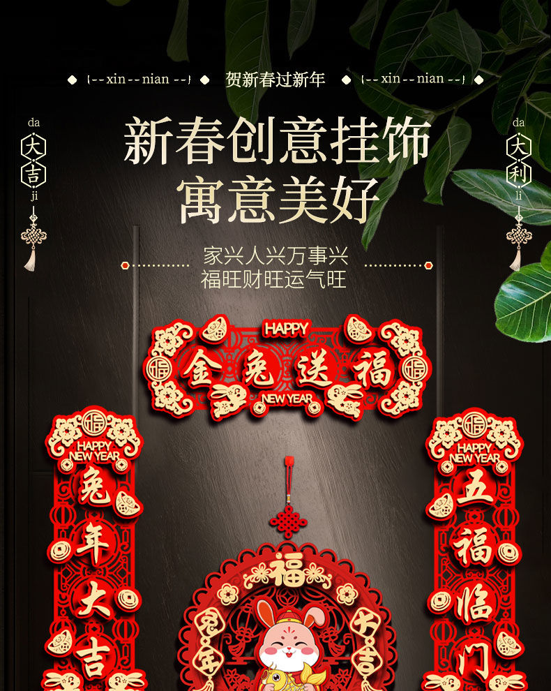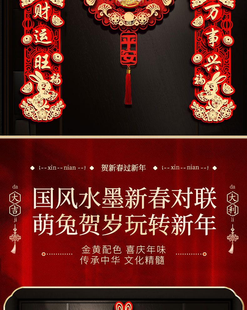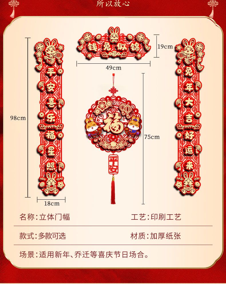 【爆款超低价预售 急单慎拍】兔年对联2023新款春节大门春联创意新年新春植绒门联室内装饰用品