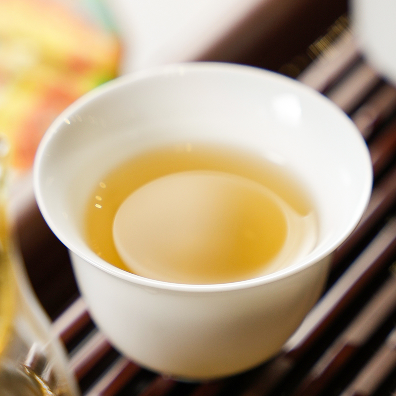 沸水开汤,汤色橙黄透亮,入口劲道十足,有山野气韵厚积薄发的感觉,回甘迅猛而且悠长,处处彰显着茶王老班章的气质;整体来讲这款茶的风格偏向于浓俨饱满,而且水路非常细腻,喉韵甘爽甜润,令人惊喜!总体来说值得长期品饮!