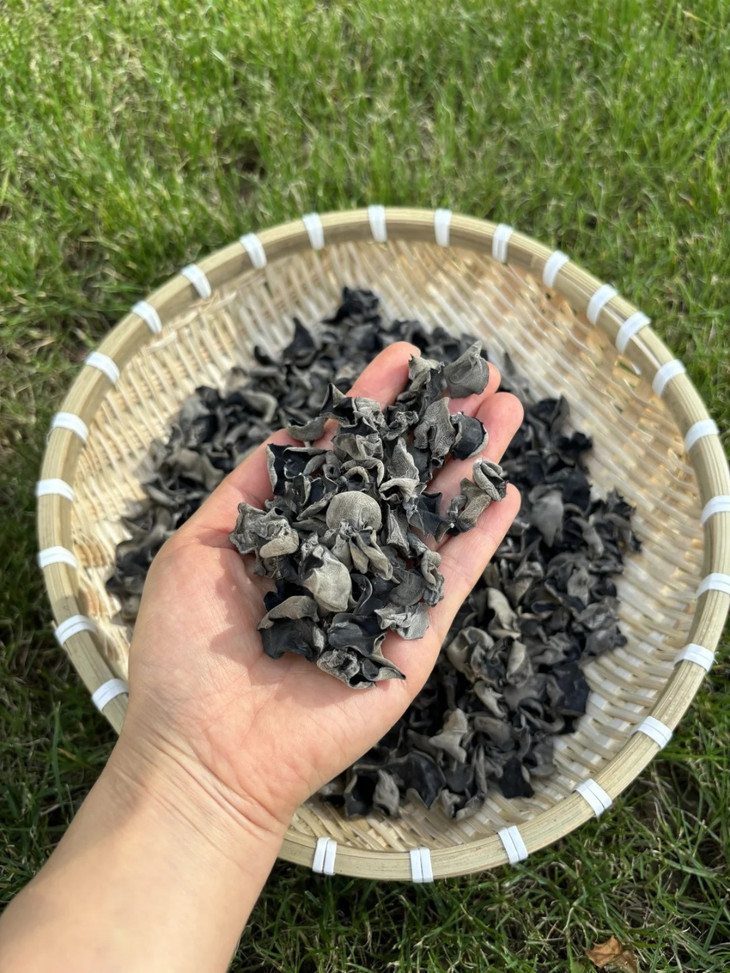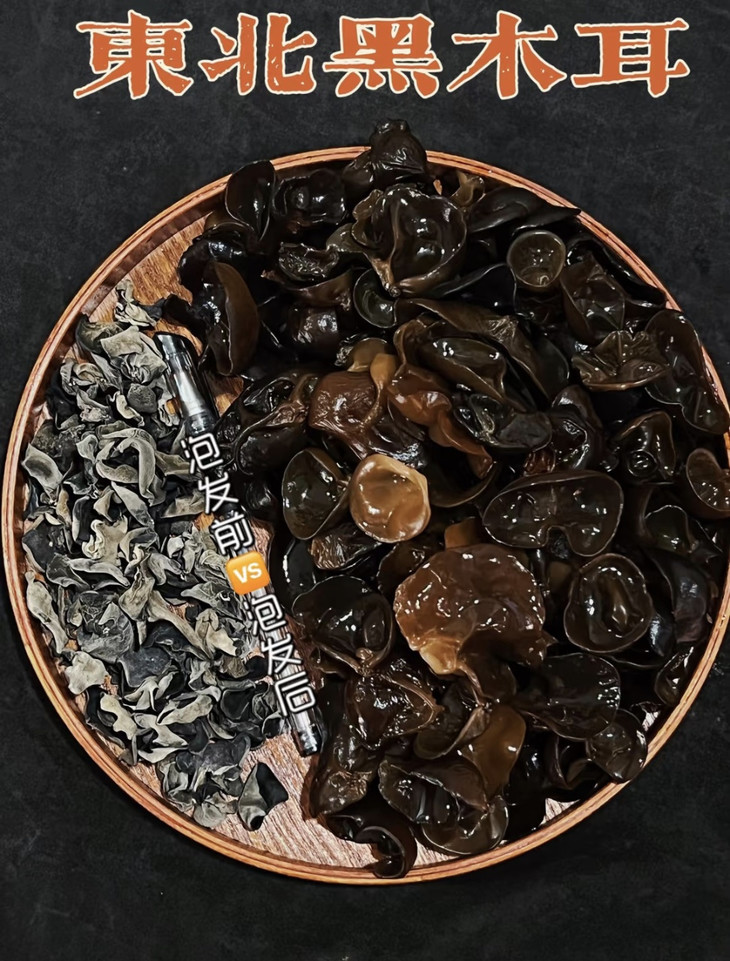 要知道数斤的新鲜木耳 才能晒出一两斤干木耳 所以别看干木耳感觉很轻 每一朵都是经过人工筛选,十分珍贵~ 晾干后的东北特产黑木耳 肉厚色正遇水泡发弹性足,有光泽, 吃到嘴里圆润、细腻,也难怪会如此出名👍