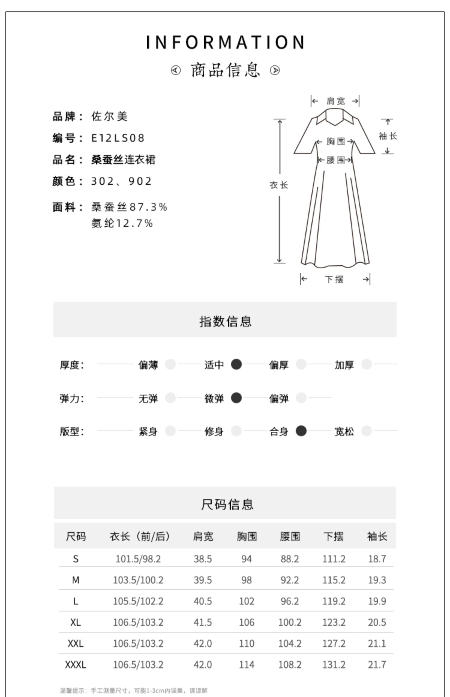 佐尔美2022夏季新款 桑蚕丝真丝弹力桑波缎连衣裙女E12LS08