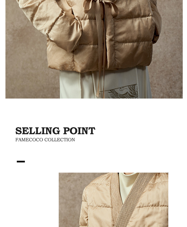 Famecoco范可儿中式山水暗纹提花丝质短款轻薄羽绒服FAC8AI008