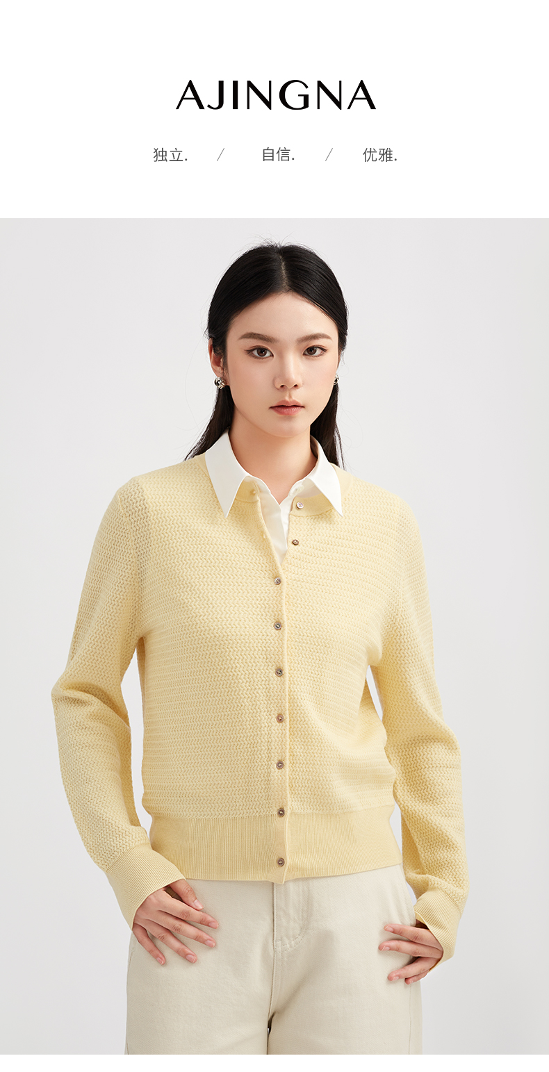 【商场同款】阿菁娜冬季新款直筒廓形叠穿针织衫圆领贝壳扣松弛感包容身材A30D318021