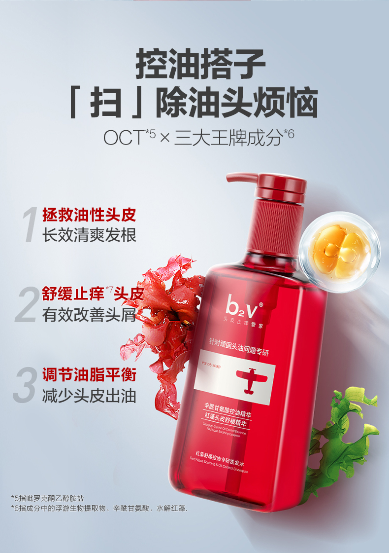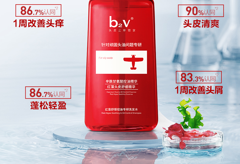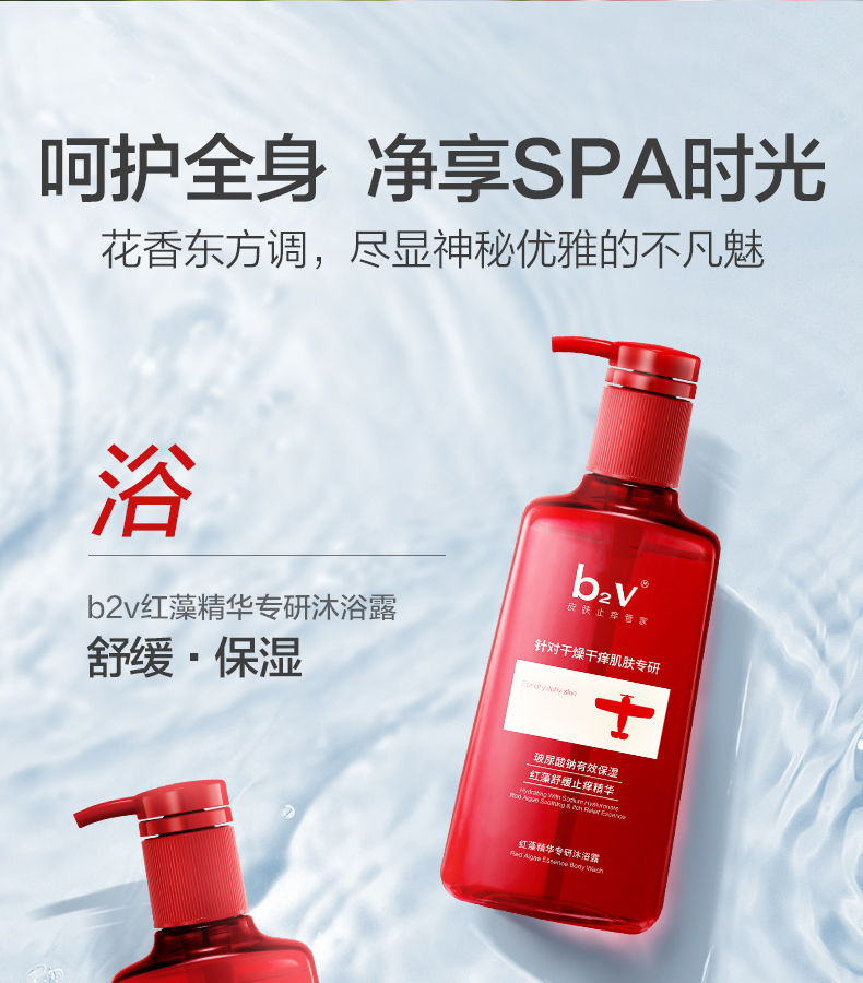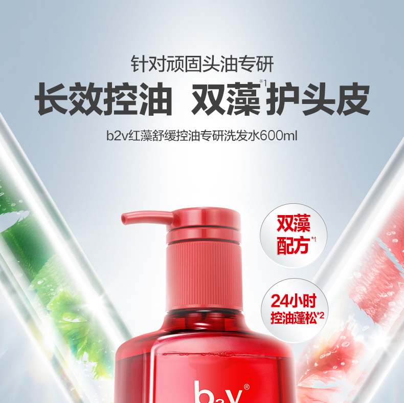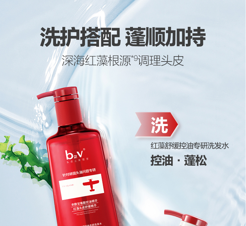 b2v红藻舒缓控油专研洗发水600ml+b2v红藻精华专研沐浴露580ml套装送礼盒旅行装