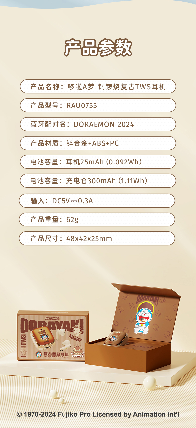 哆啦A梦 铜锣烧复古TWS耳机