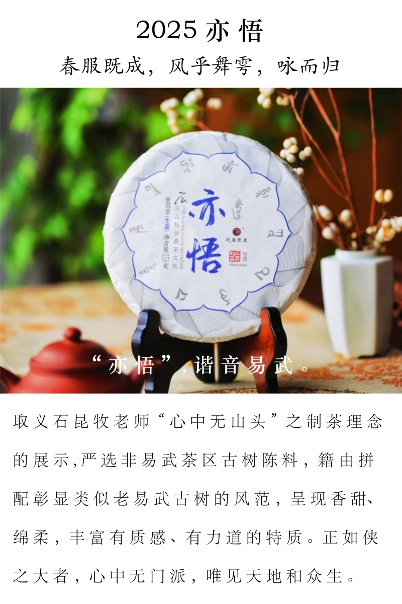 2025亦悟 古树生茶 老易武风范 香甜绵厚,柔美宽广 258克饼
