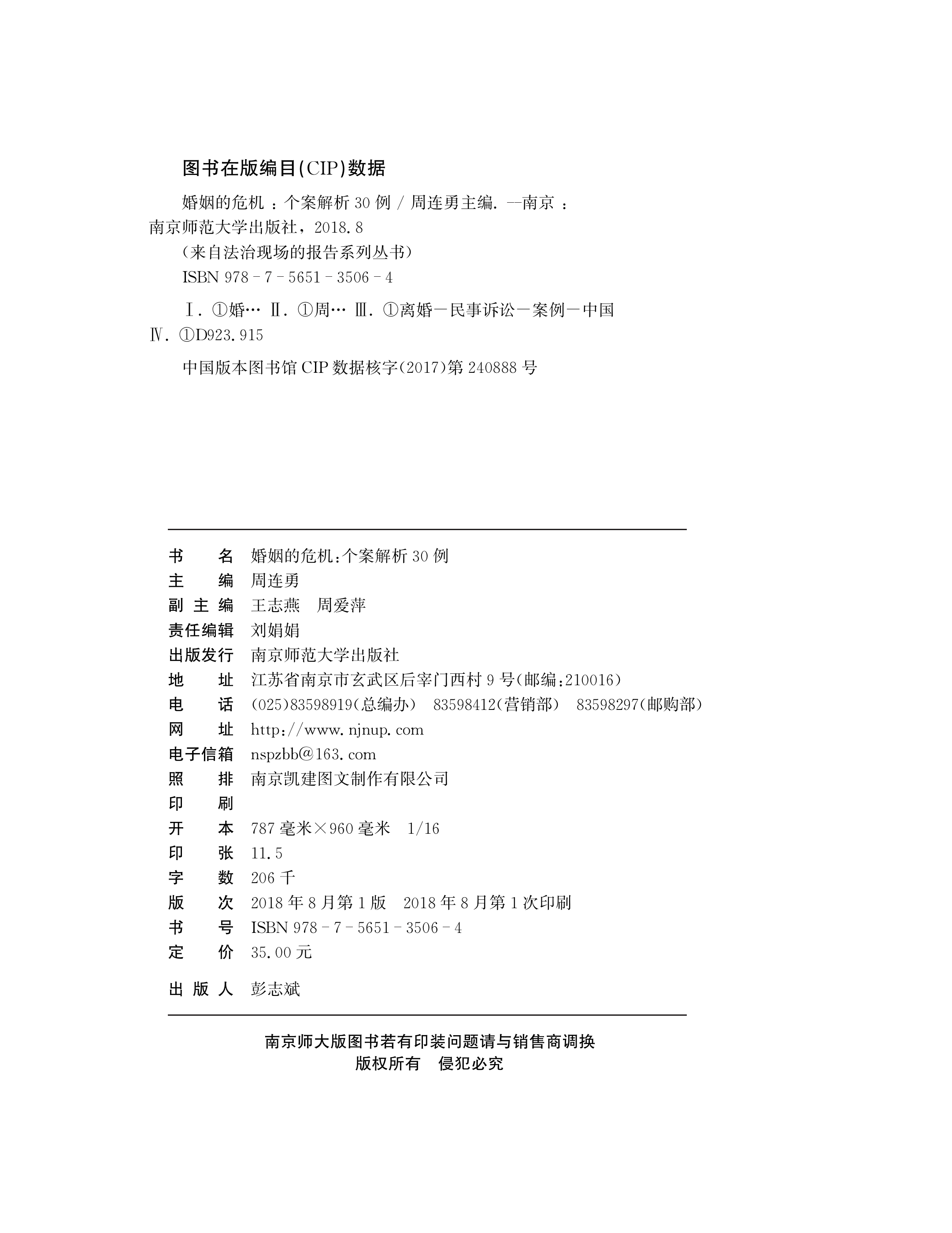 婚姻的危机:个案解析30例 来自法治现场的报告 周连勇 主编