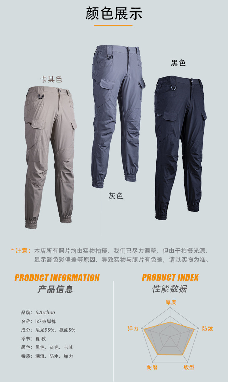 夏季IX7速干战术长裤男 弹力特种兵 修身户外男装作训束脚裤 荷叶拒水 舒适