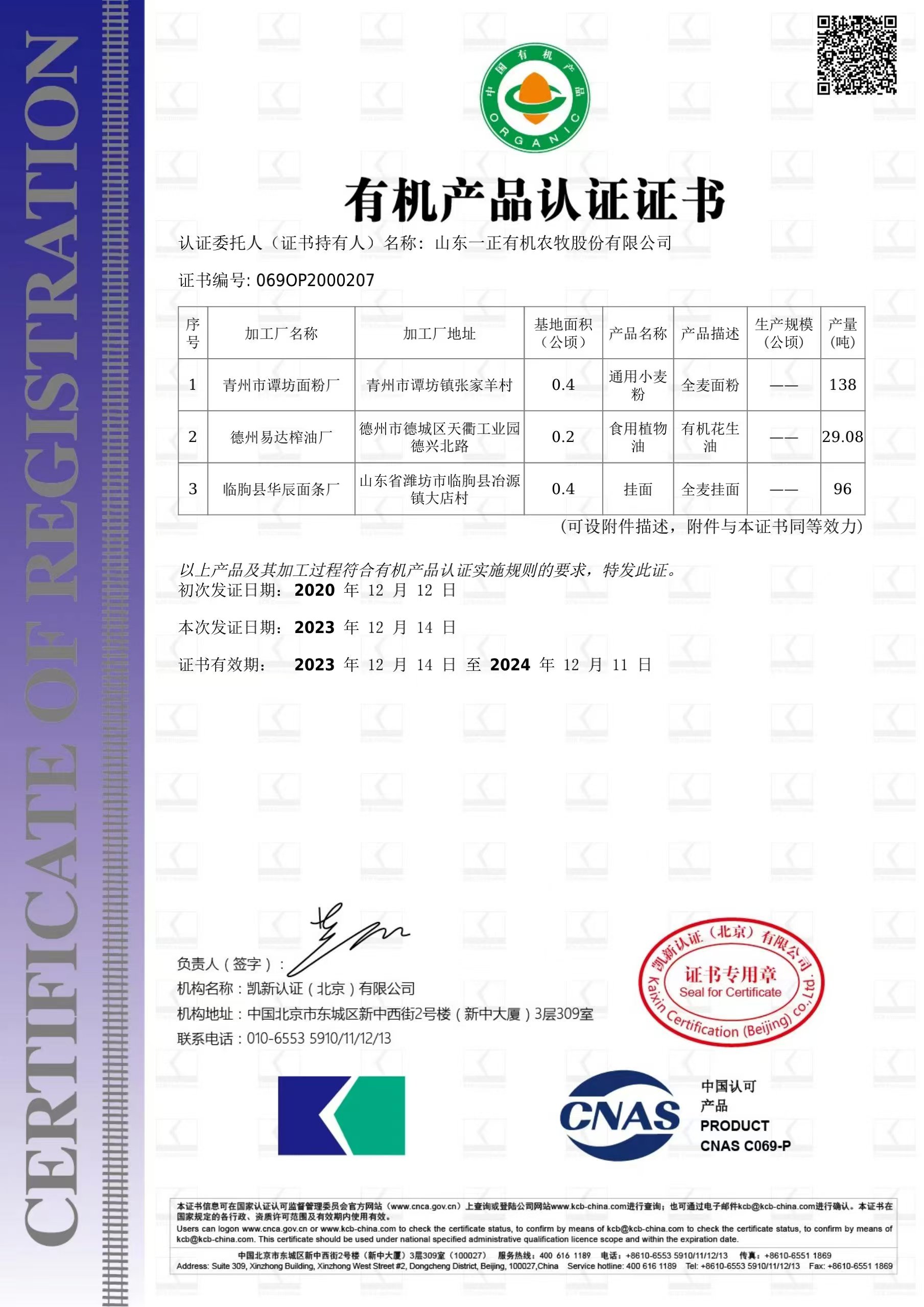 有机证书: