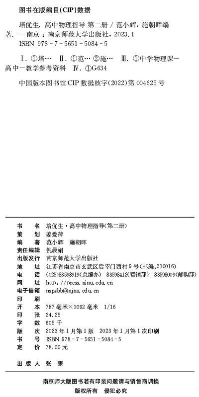 培优生 高中物理指导 第二册 范小辉,施朝晖编著 南京师范大学出版社