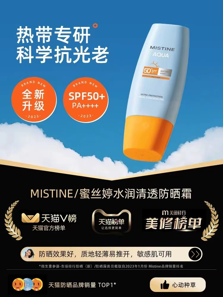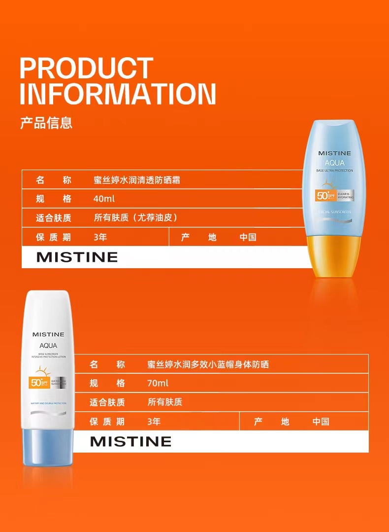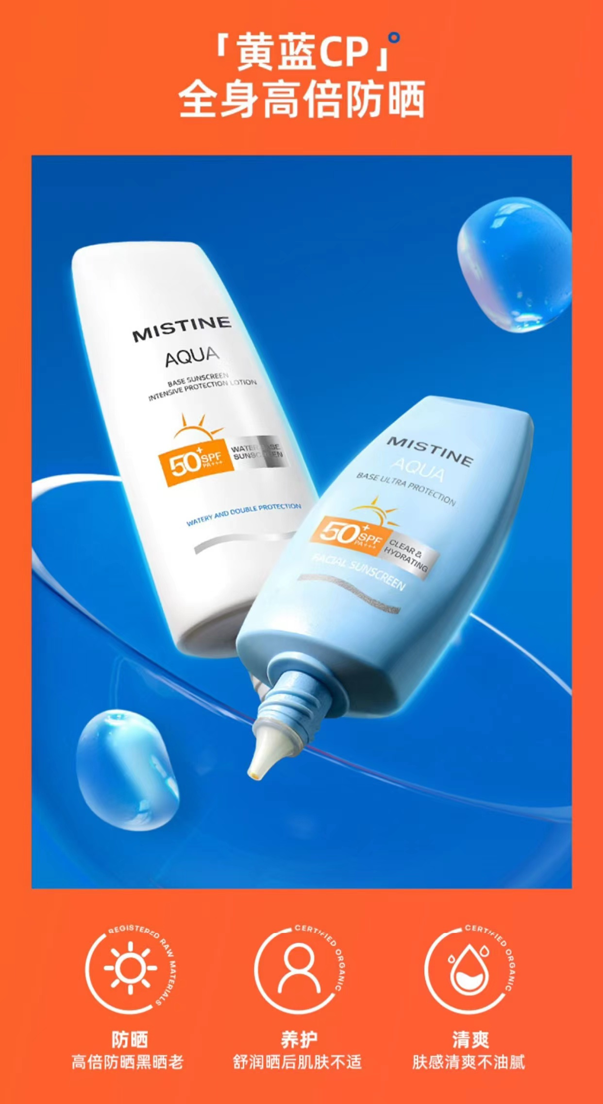 Mistine蜜丝婷水润清透防晒霜SPF50+ 面部/身体 清爽不油腻