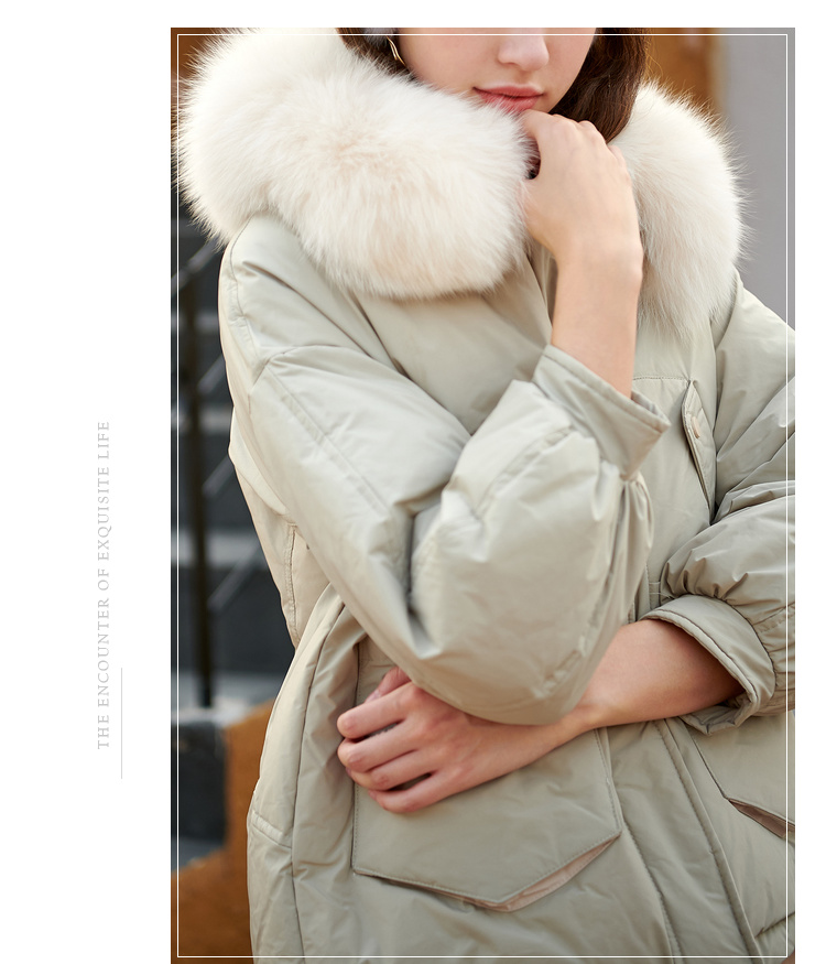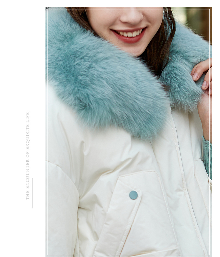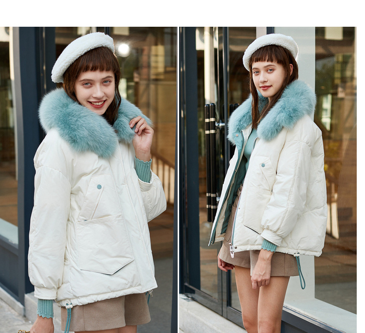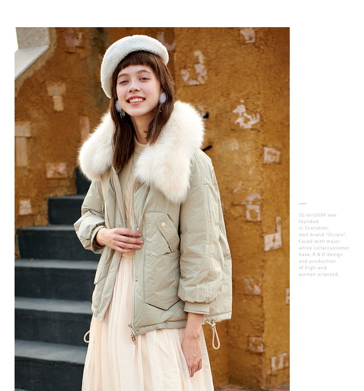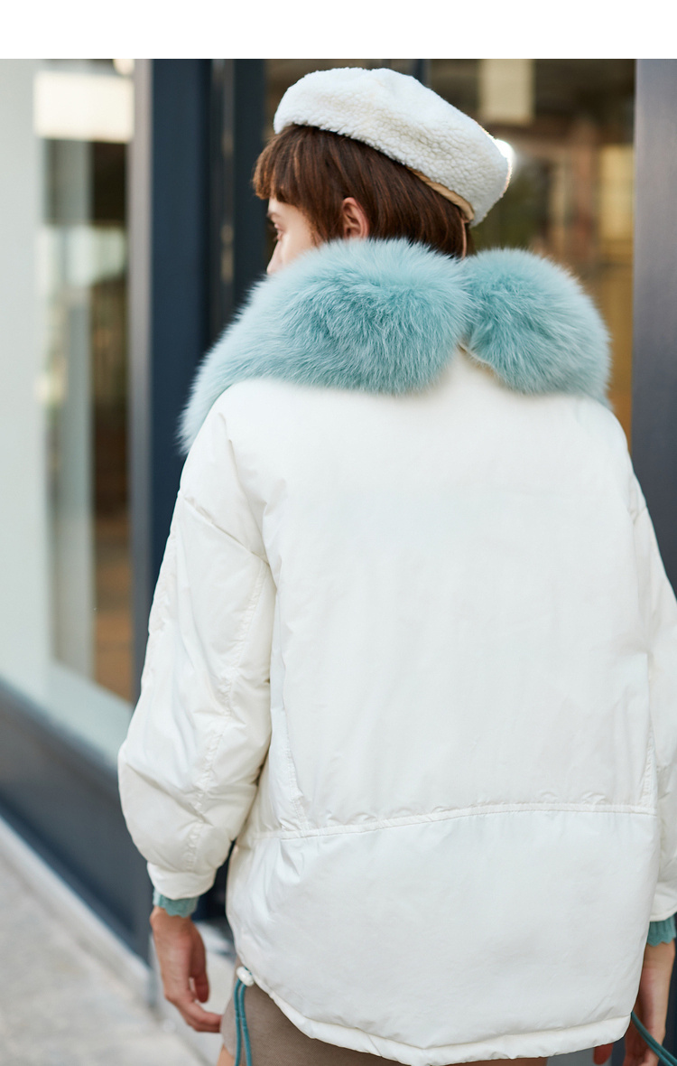 @欧芮儿2019冬季羽绒服女短款连帽带毛领米白色白鸭绒