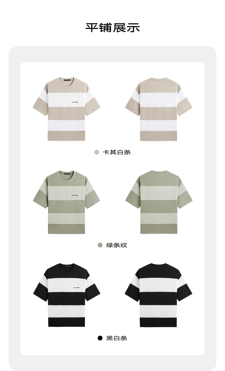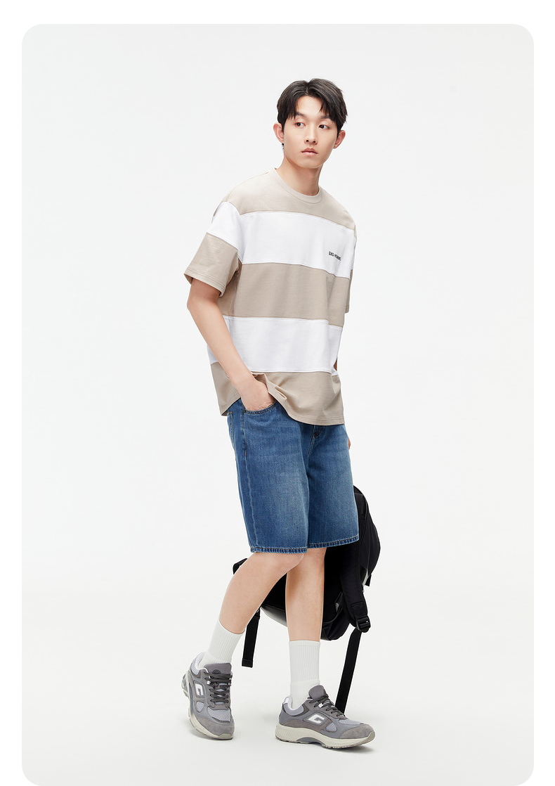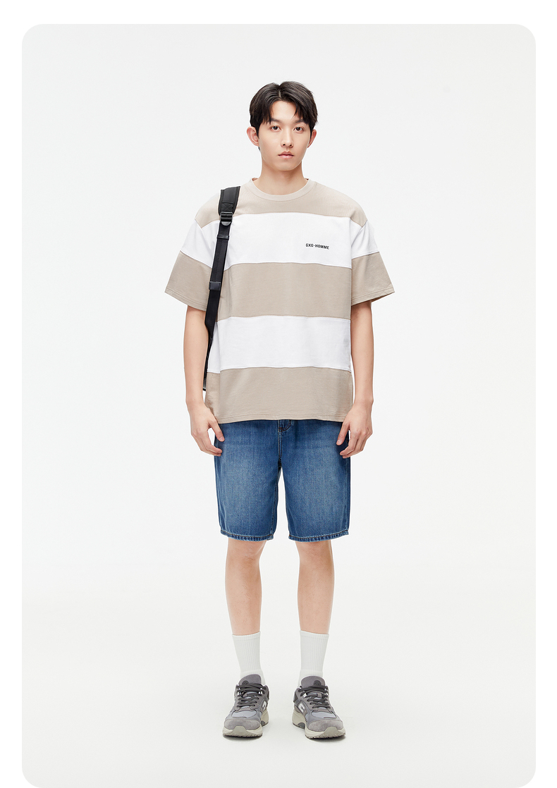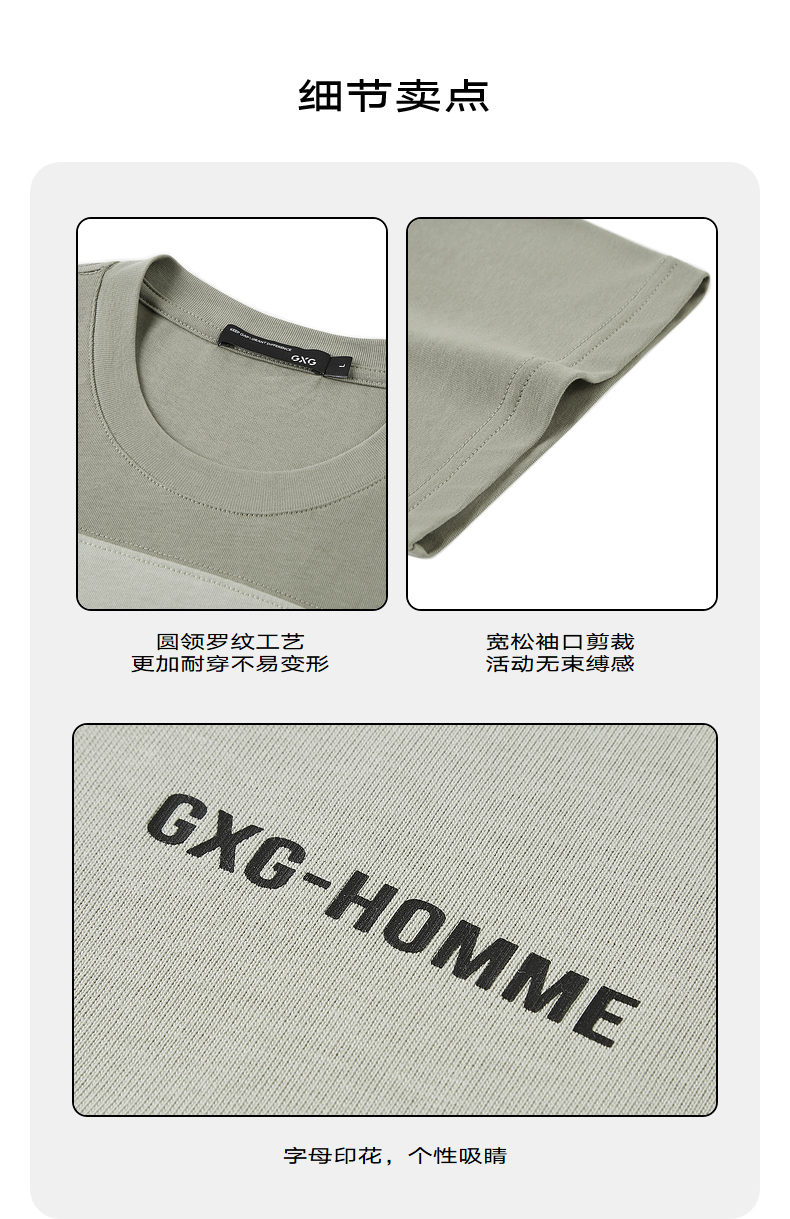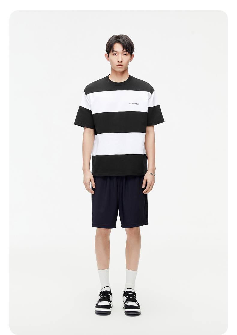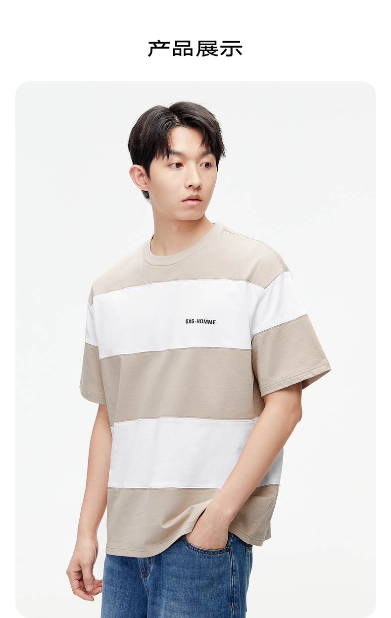 GXG男装 夏季撞色条纹潮搭宽松舒适圆领短袖t恤男