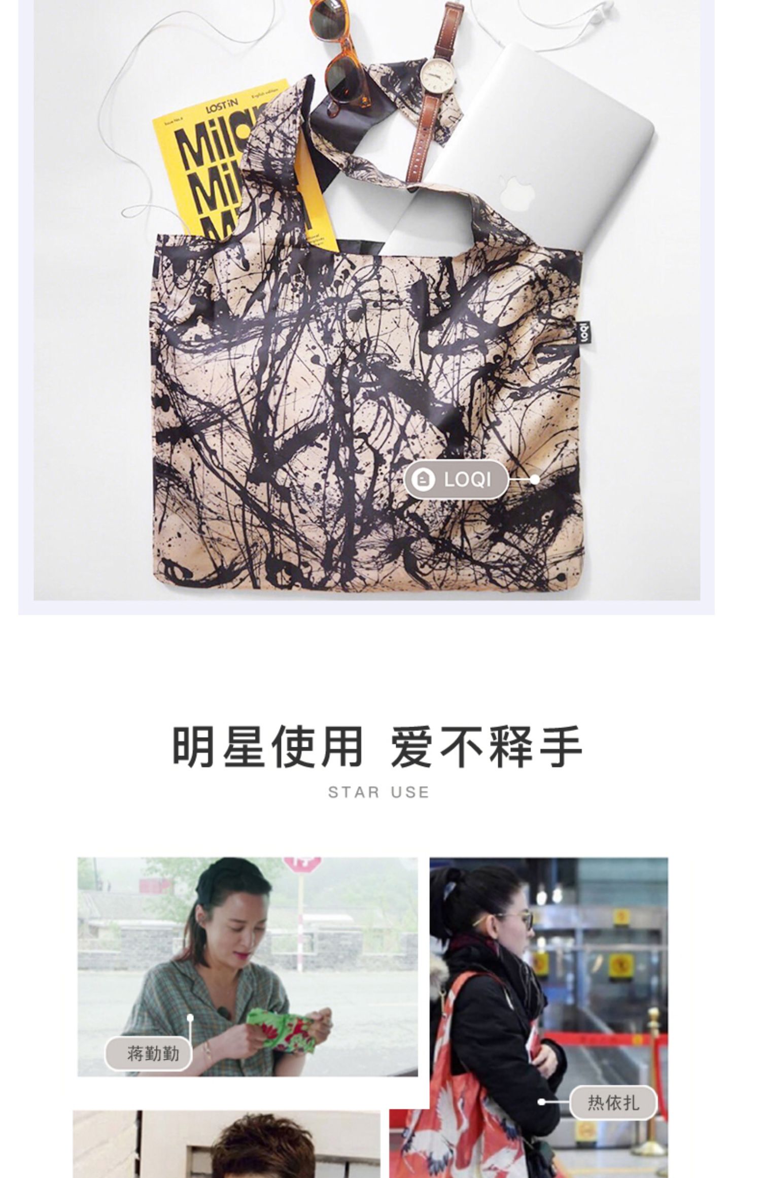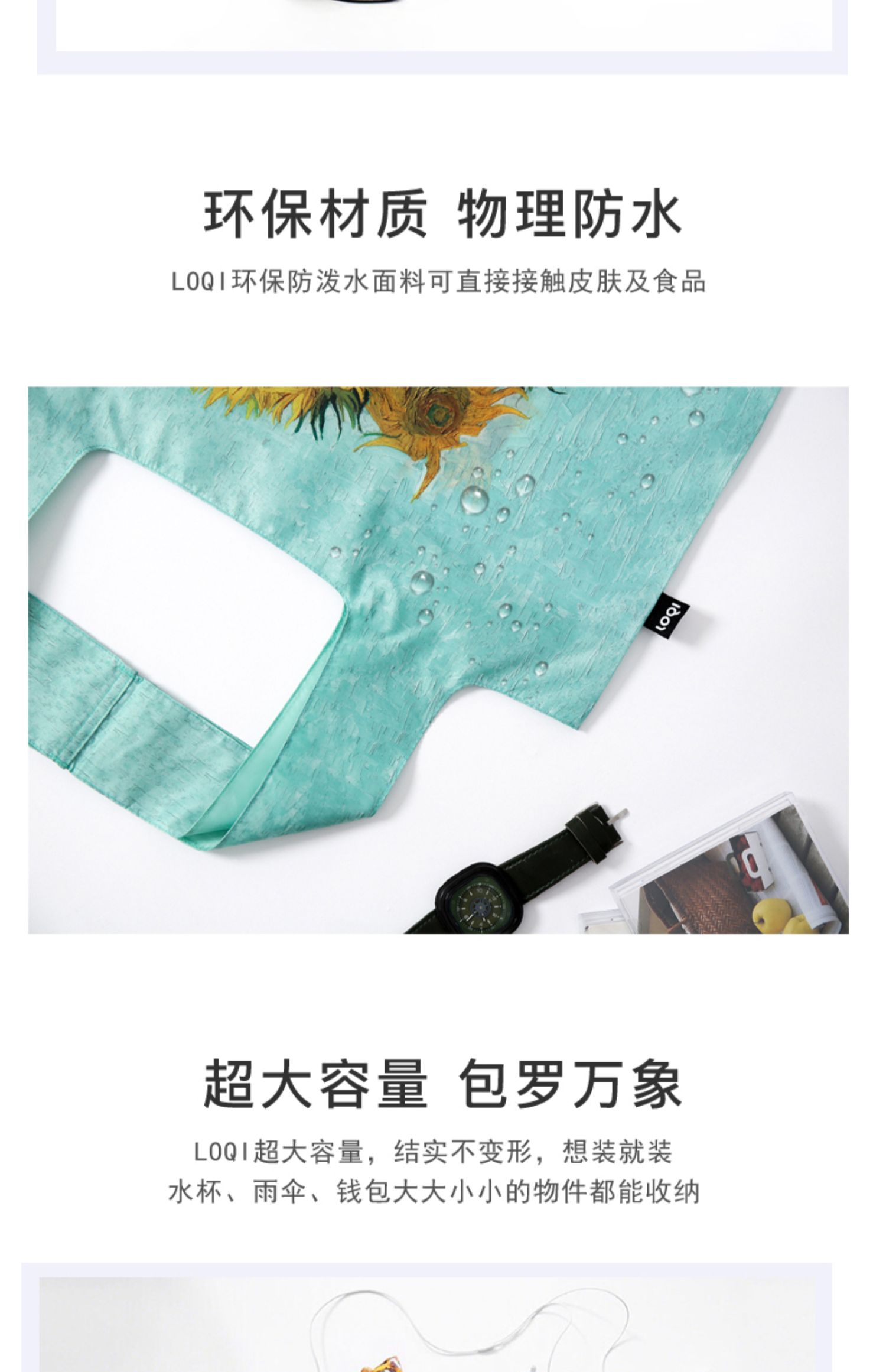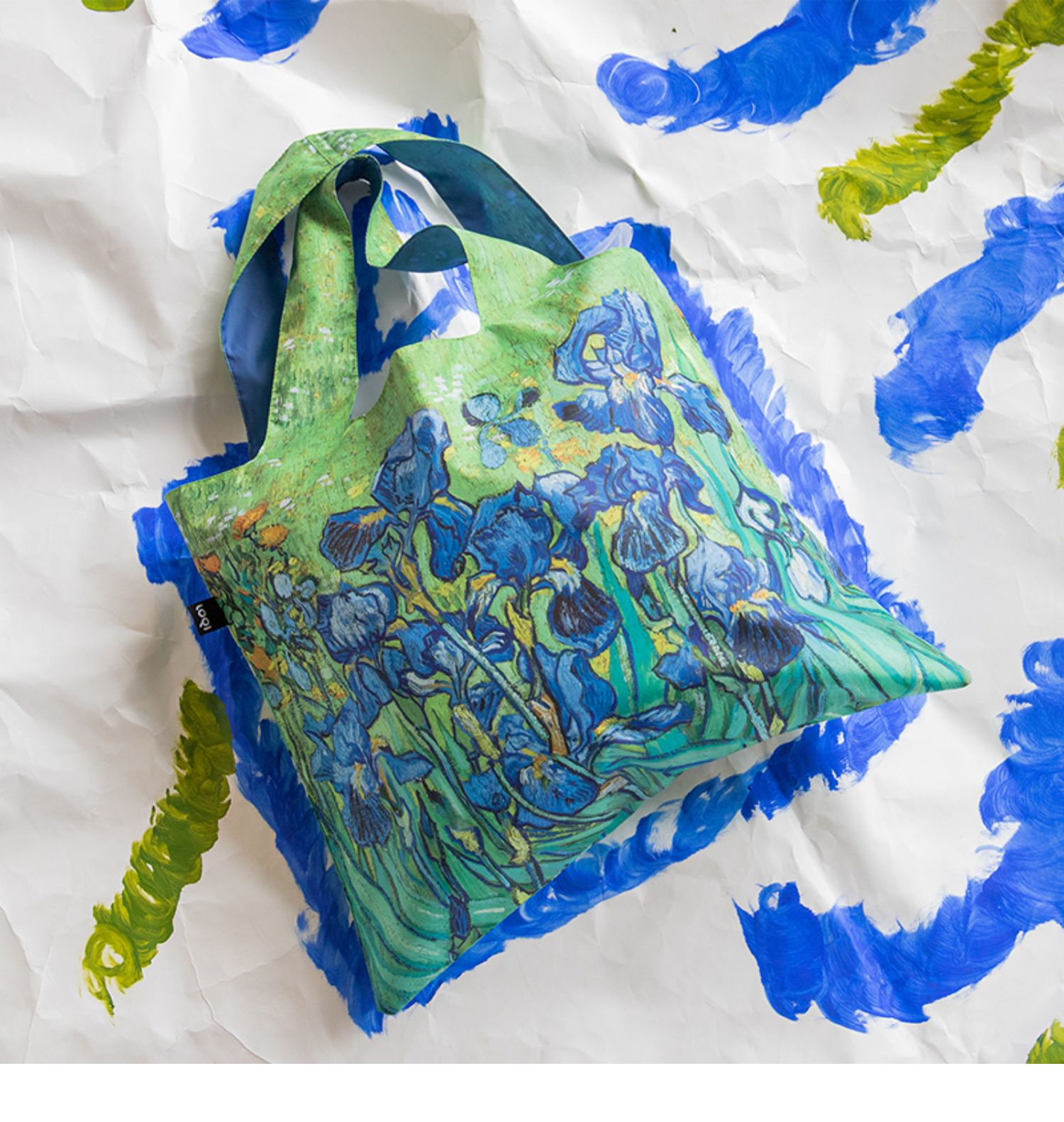 德国LOQI时尚艺术环保万用袋 VG.IR鸢尾花 折叠大容量单肩手提购物袋承重40斤防泼水