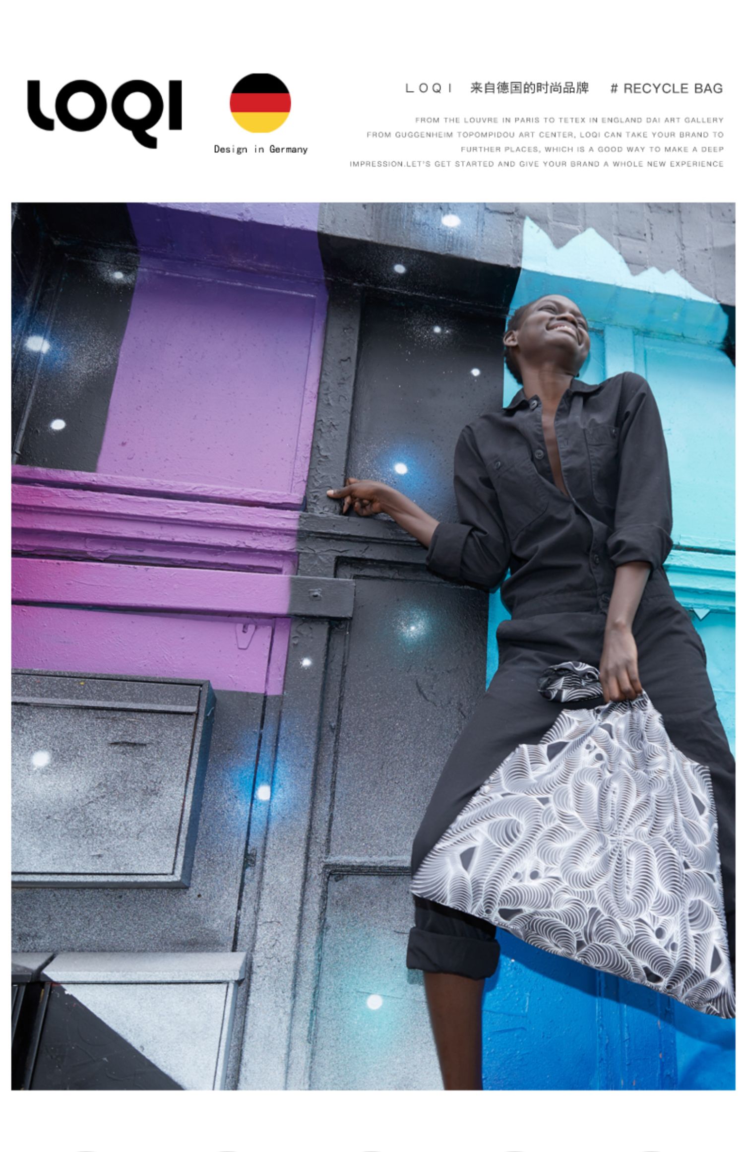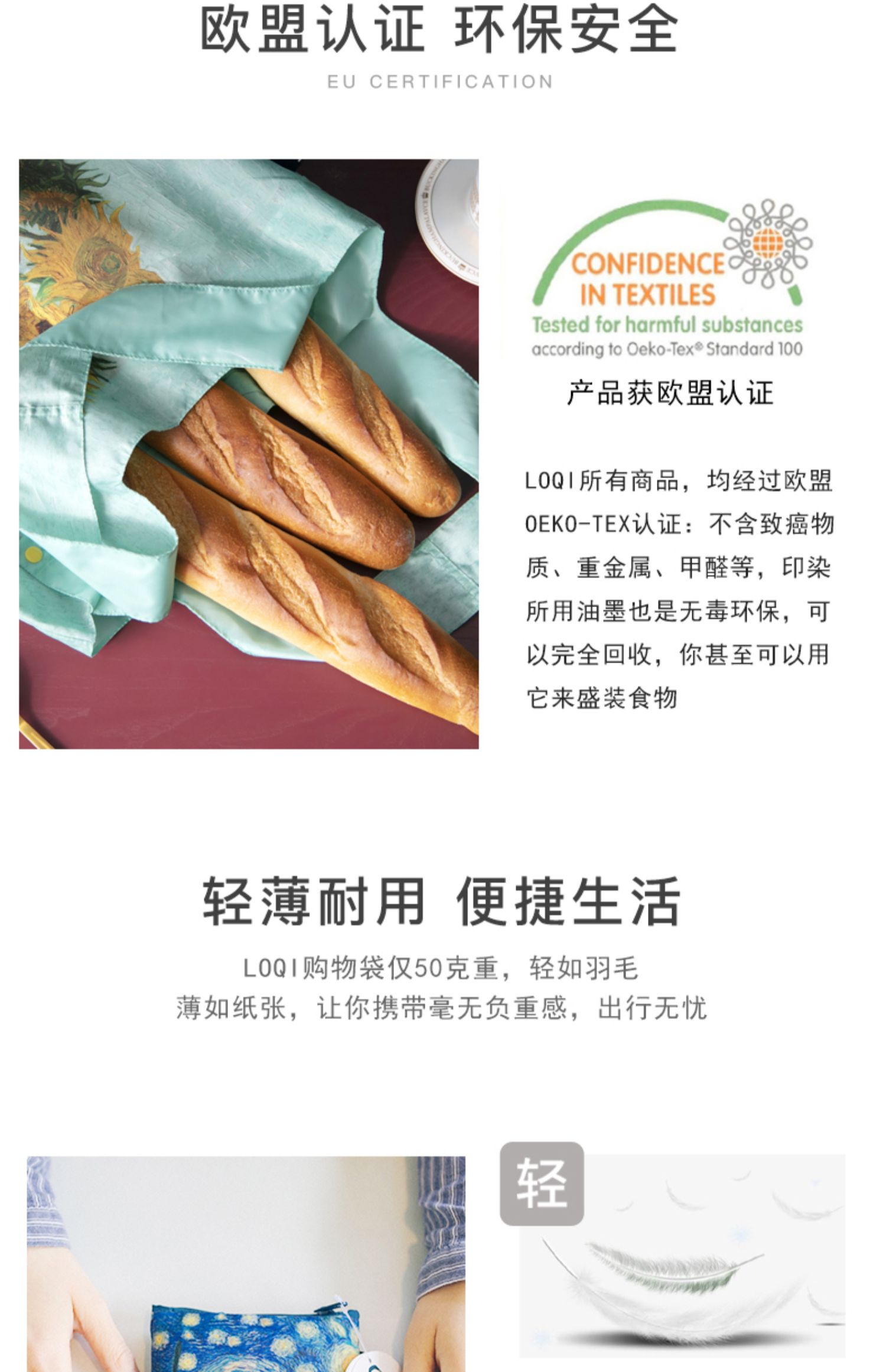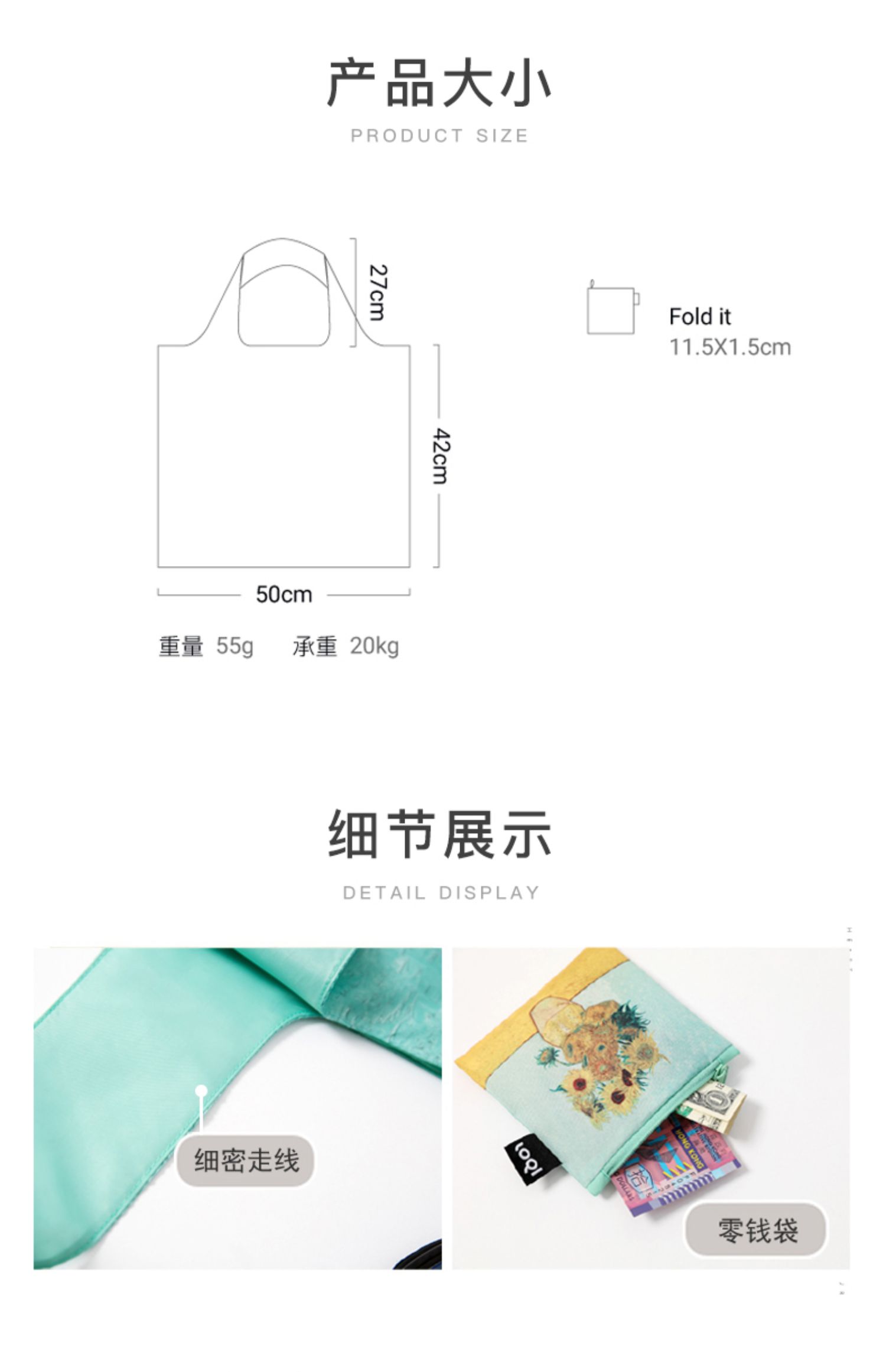德国LOQI时尚艺术环保万用袋 VG.IR鸢尾花 折叠大容量单肩手提购物袋承重40斤防泼水